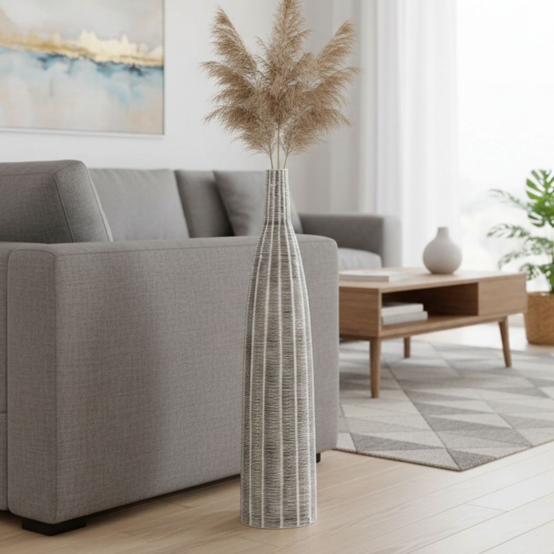 Make a bold design statement with the 101.5cm Black and White Lines Polyresin Floor Vase — a tall, contemporary décor piece that combines modern minimalism with timeless sophistication. Featuring a sleek matte black finish accented by fine white line detailing, this vase adds height, texture, and contrast to any space. Crafted from durable yet lightweight polyresin, it’s easy to move and style while maintaining a refined, premium look. Perfect for displaying pampas grass, dried stems, or artificial arrangements, it also stands beautifully on its own as a sculptural art piece. Whether placed in a living room, hallway, or entryway, this striking floor vase brings elegance and modern flair to your interior décor.