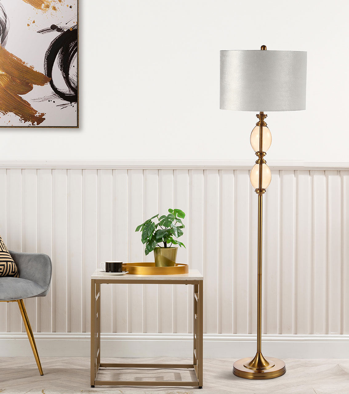 Add refined elegance to your living space with the 156.5cm Amber Brown Glass Floor Lamp with Cream Velvet Shade. Designed to make a statement, this tall floor lamp features a beautifully crafted amber brown glass base paired with a soft cream velvet shade. The combination creates a warm, ambient glow that enhances living rooms, bedrooms, lounges, or reading corners. Both decorative and functional, this floor lamp brings timeless sophistication and cozy lighting to your home.