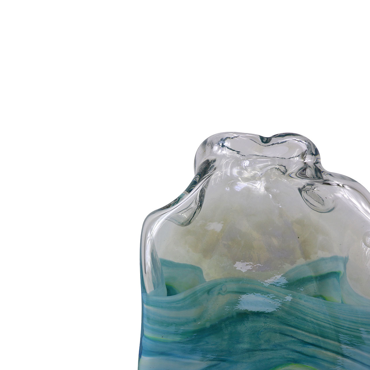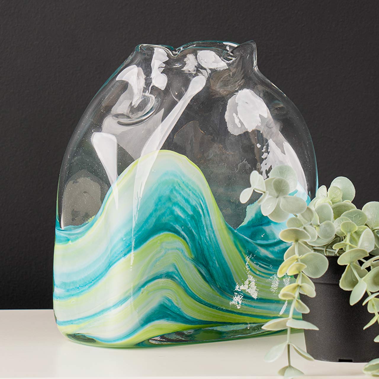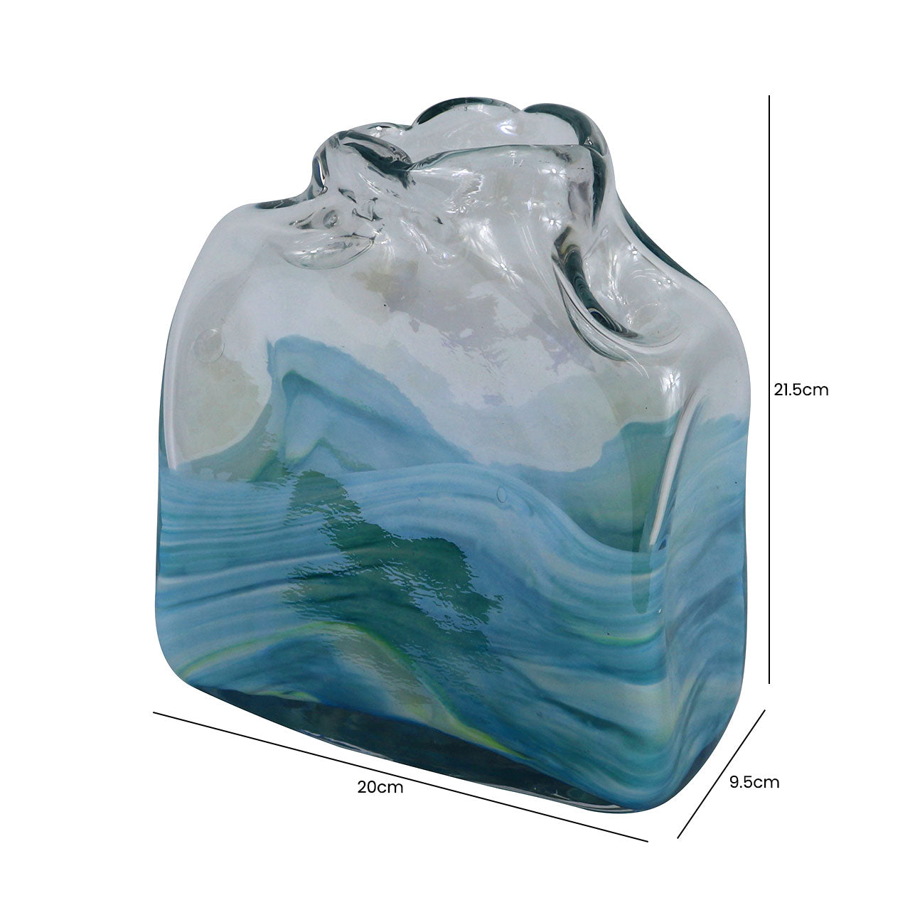 Handcrafted by skilled artisans, each piece showcases unique ocean-like swirls inside the glass, making it not just a vase, but a piece of art. Perfect for living rooms, dining tables, hallways, and offices, it enhances floral arrangements or stands beautifully on its own as a sculptural décor piece.