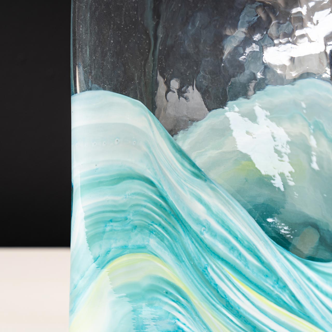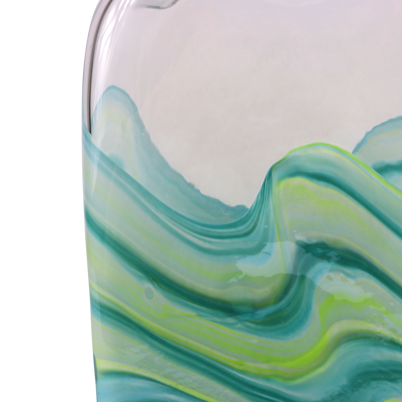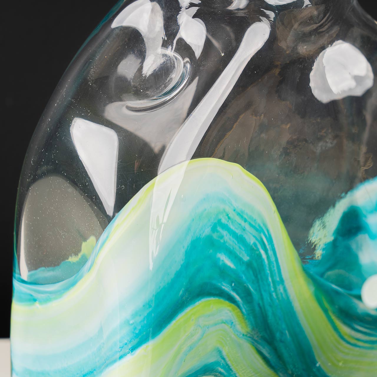 Handcrafted by skilled artisans, each piece showcases unique ocean-like swirls inside the glass, making it not just a vase, but a piece of art. Perfect for living rooms, dining tables, hallways, and offices, it enhances floral arrangements or stands beautifully on its own as a sculptural décor piece.