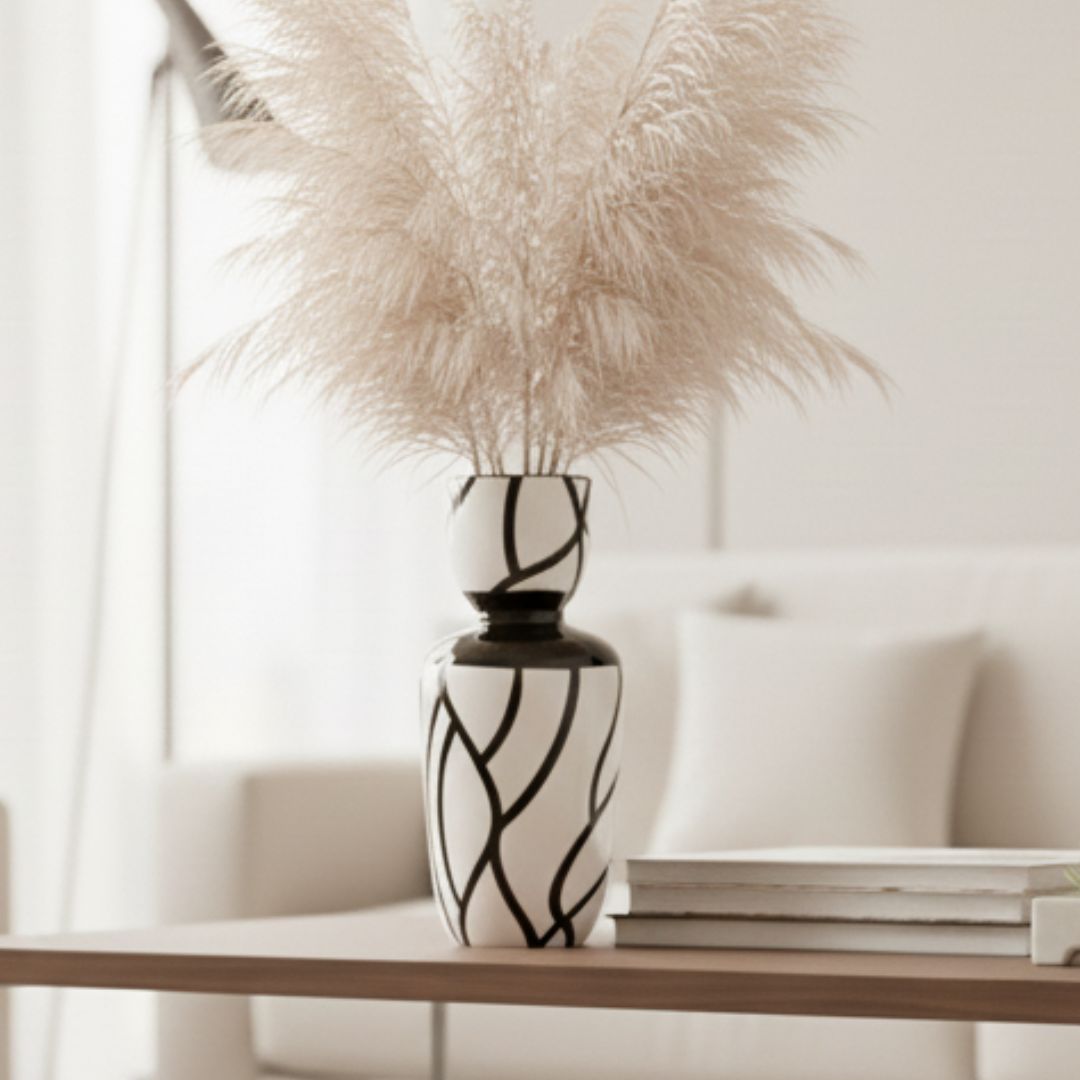 Elevate your home décor with the 25cm White and Black Ceramic Vase — a bold yet elegant decorative piece that blends modern design with timeless charm. Crafted from premium ceramic, this vase showcases a smooth black-and-white contrast that adds sophistication to any space. Perfect for coffee tables, sideboards, or shelves, it complements both minimalist and statement interiors. Whether styled with fresh flowers, dried stems, or left as a standalone accent, this modern vase brings balance, texture, and contemporary elegance to your living room, dining area, or office.
