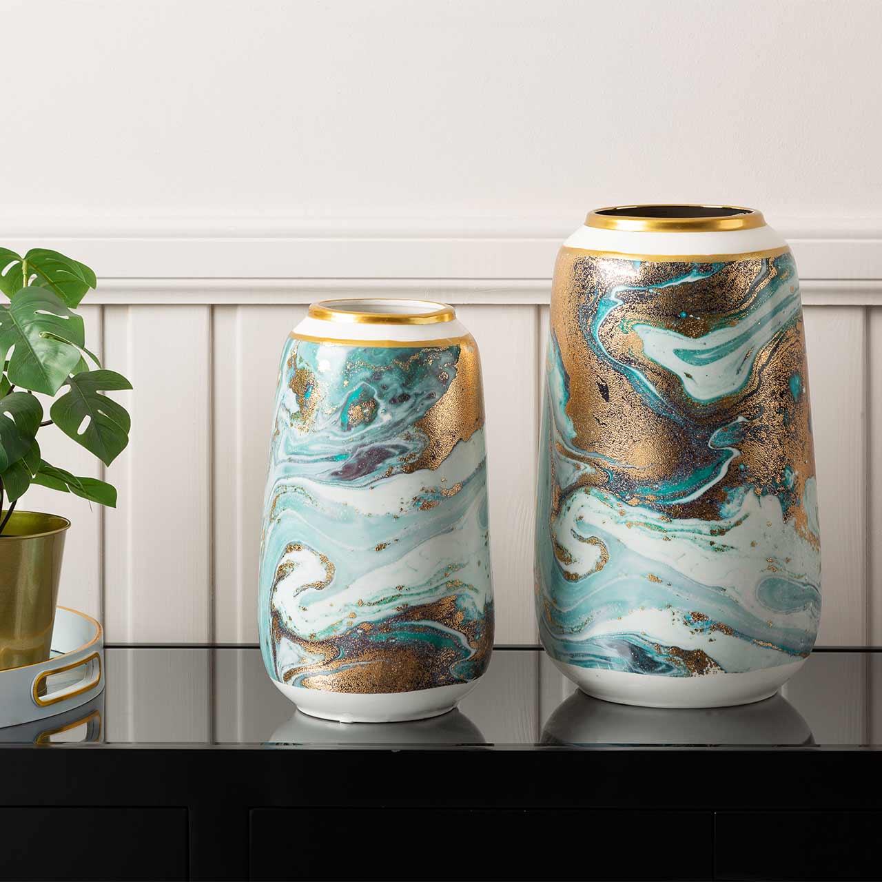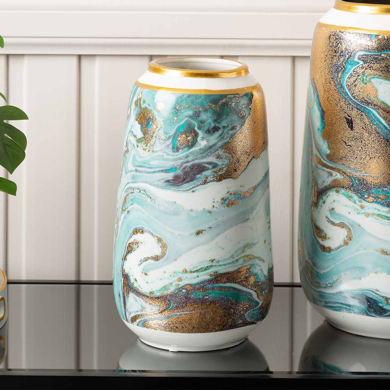 Elevate your décor with this stunning 30cm Blue White Gold Abstract Ceramic Vase, designed to bring artistic elegance to any living space. Featuring a beautifully hand-painted abstract pattern in blue and white with luxurious gold detailing, this ceramic vase serves as a stylish accent for tables, shelves, consoles, or office desks. Whether used with fresh flowers, dried stems, or displayed on its own, it instantly enhances the ambiance of modern, minimalist, and contemporary interiors.