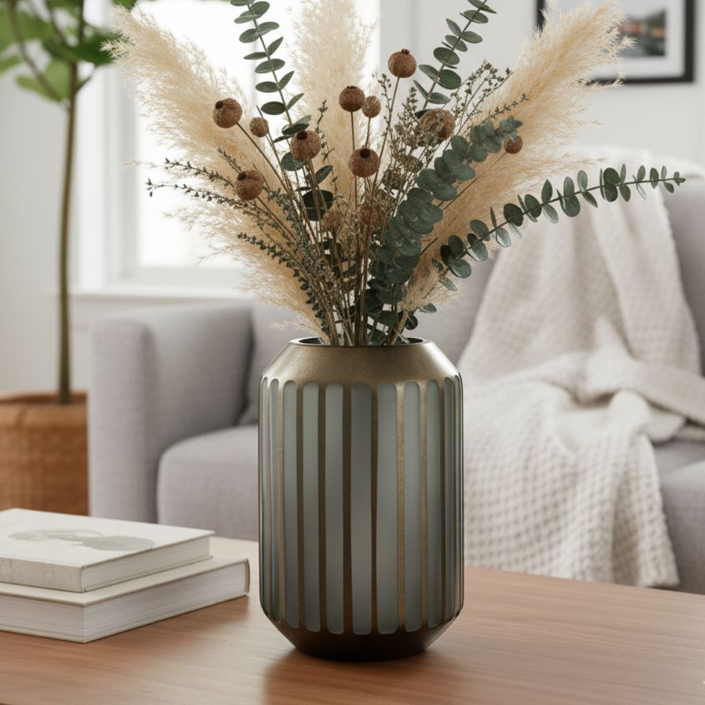 The 32.5cm Coffee Brown and Grey Pleated Glass Vase brings refined elegance to modern interiors. Featuring a sculptural pleated texture and a sophisticated blend of coffee brown and grey tones, this decorative vase works beautifully as a centerpiece or standalone accent. Ideal for living rooms, dining areas, hallways, or offices, it enhances your space with subtle luxury and contemporary style.
