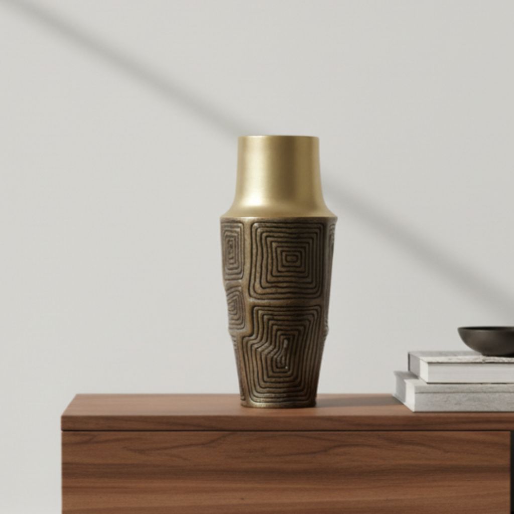 Enhance your home décor with the VANITY LIVING 34cm Dark Brown and Gold Polyresin Vase. Designed to add warmth and sophistication, this elegant decorative vase features a rich dark brown base highlighted with refined gold accents. Its timeless design makes it ideal for console tables, dining tables, shelves, or entryways. Whether styled with dried stems, artificial flowers, or displayed on its own, this vase brings a luxurious finishing touch to modern and classic interiors alike.