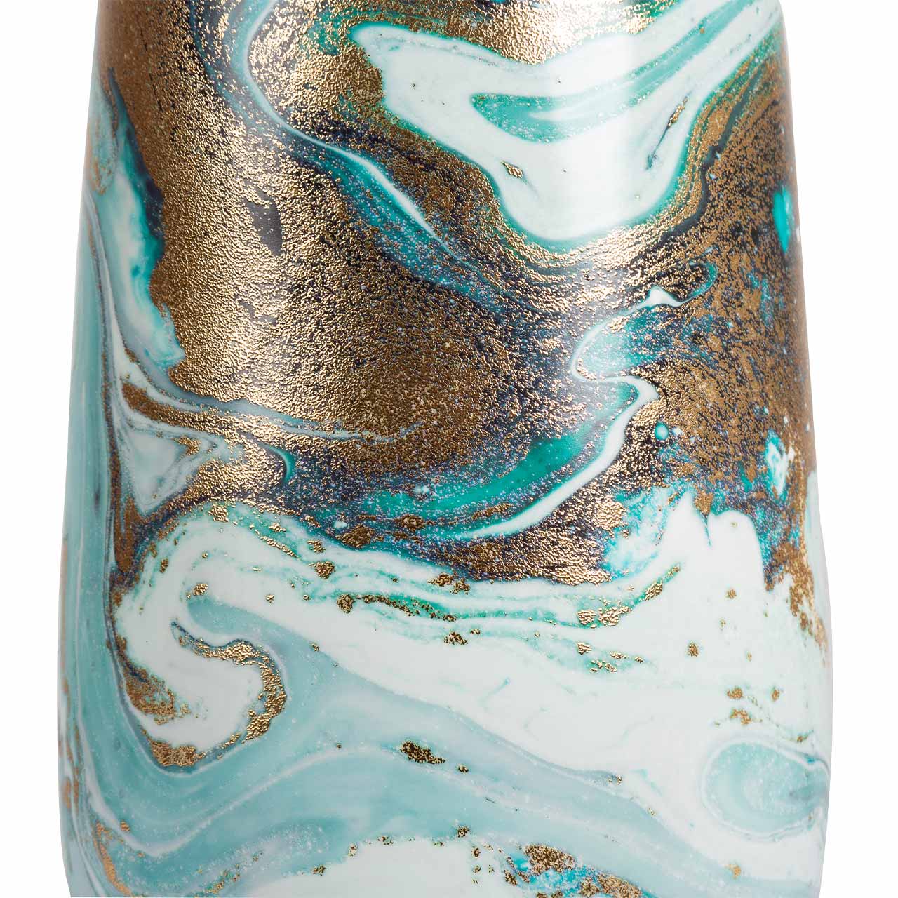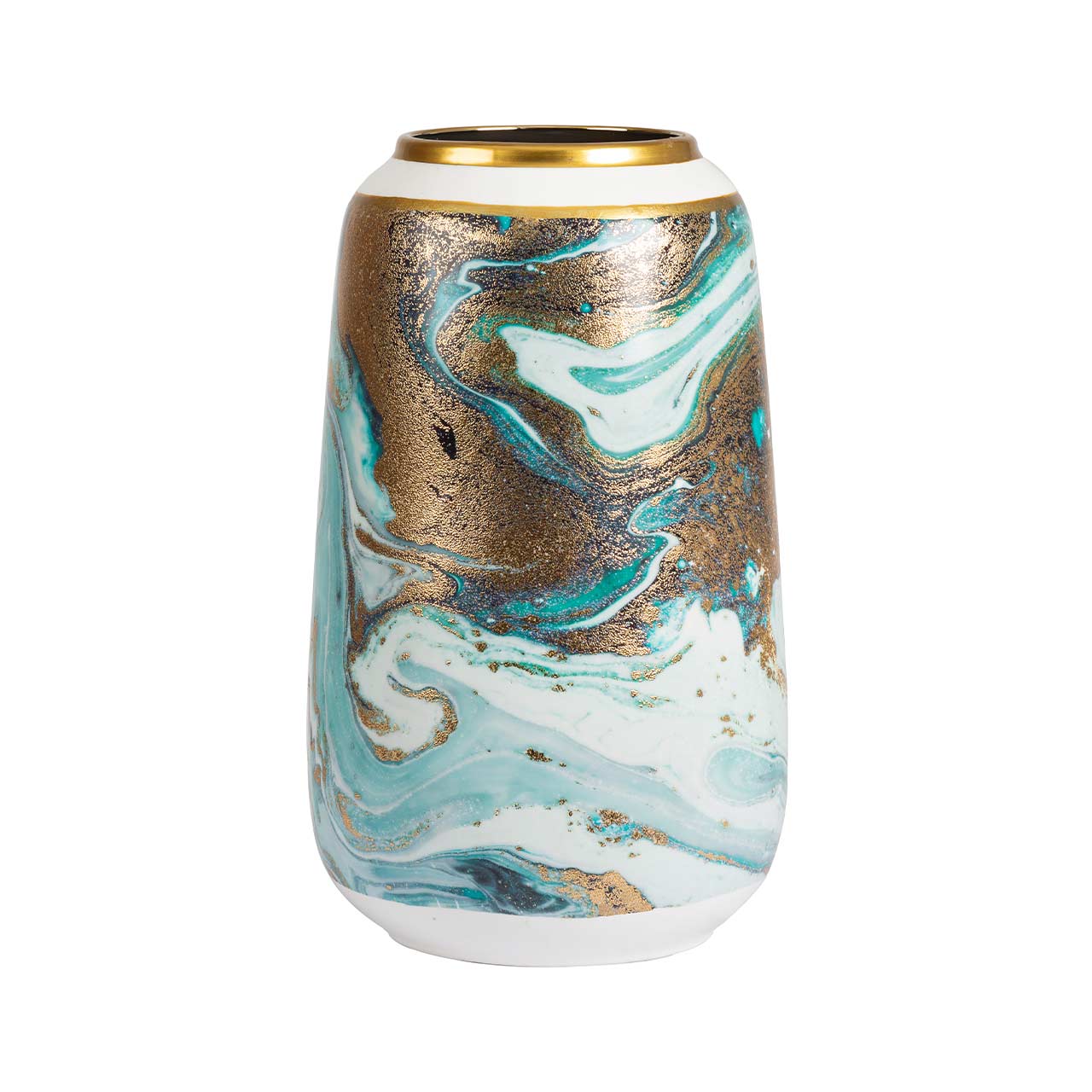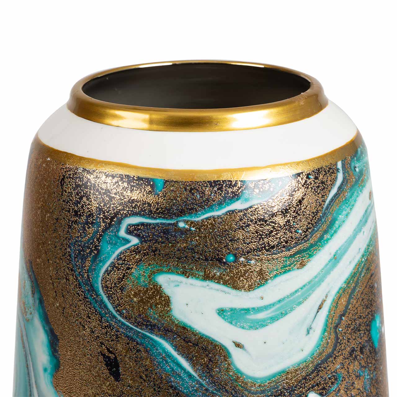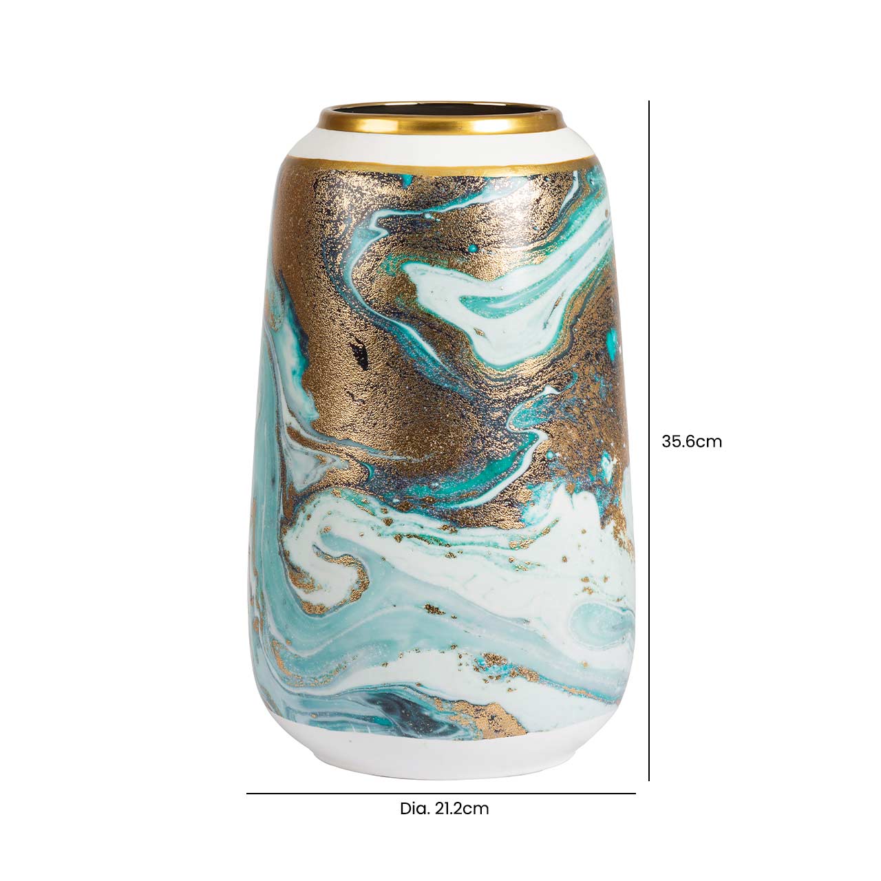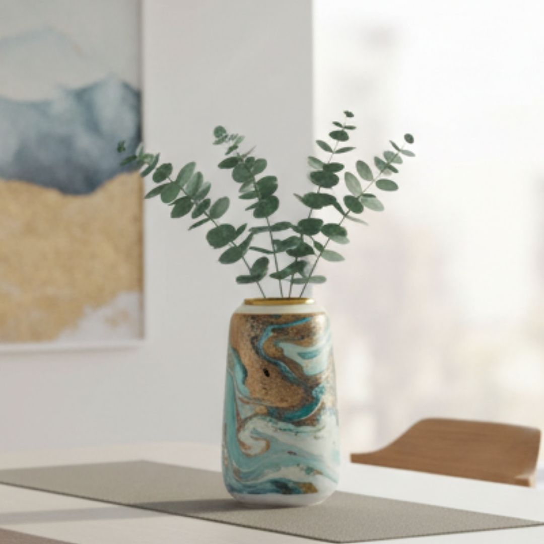 Elevate your décor with this stunning 35.6cm Blue White Gold Abstract Ceramic Vase, designed to bring artistic elegance to any living space. Featuring a beautifully hand-painted abstract pattern in blue and white with luxurious gold detailing, this ceramic vase serves as a stylish accent for tables, shelves, consoles, or office desks. Whether used with fresh flowers, dried stems, or displayed on its own, it instantly enhances the ambiance of modern, minimalist, and contemporary interiors.