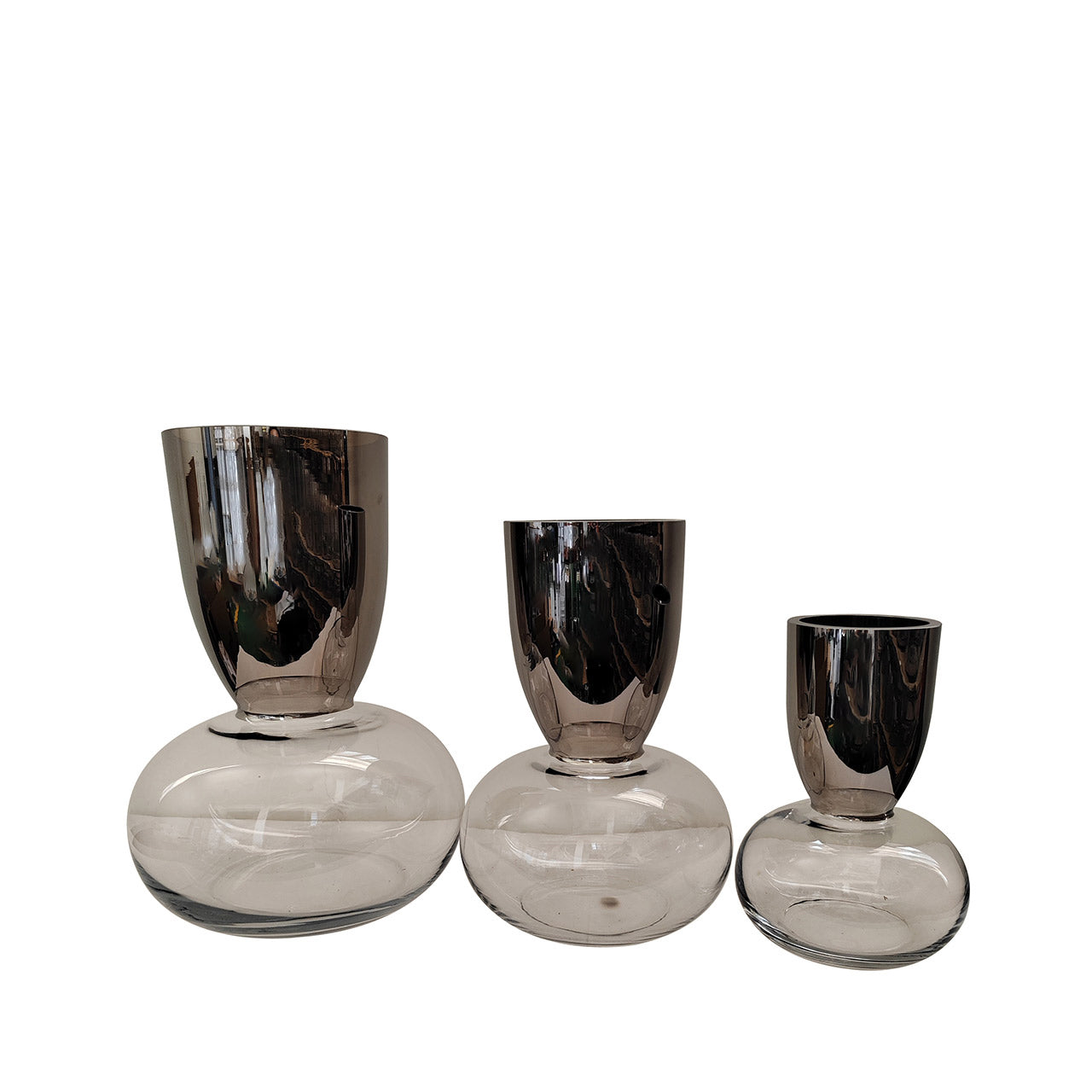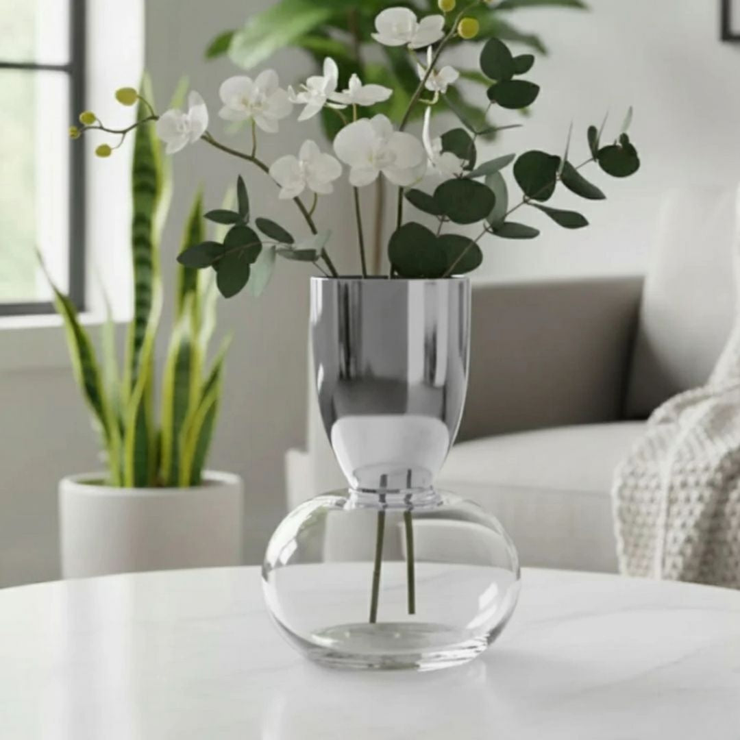 Add a refined modern touch to your interior with the VANITY LIVING 36cm Chrome & Clear Glass Vase with Round Base. Crafted from premium clear glass and finished with elegant chrome detailing, this vase brings effortless sophistication to living rooms, dining areas, bedrooms, and office spaces.