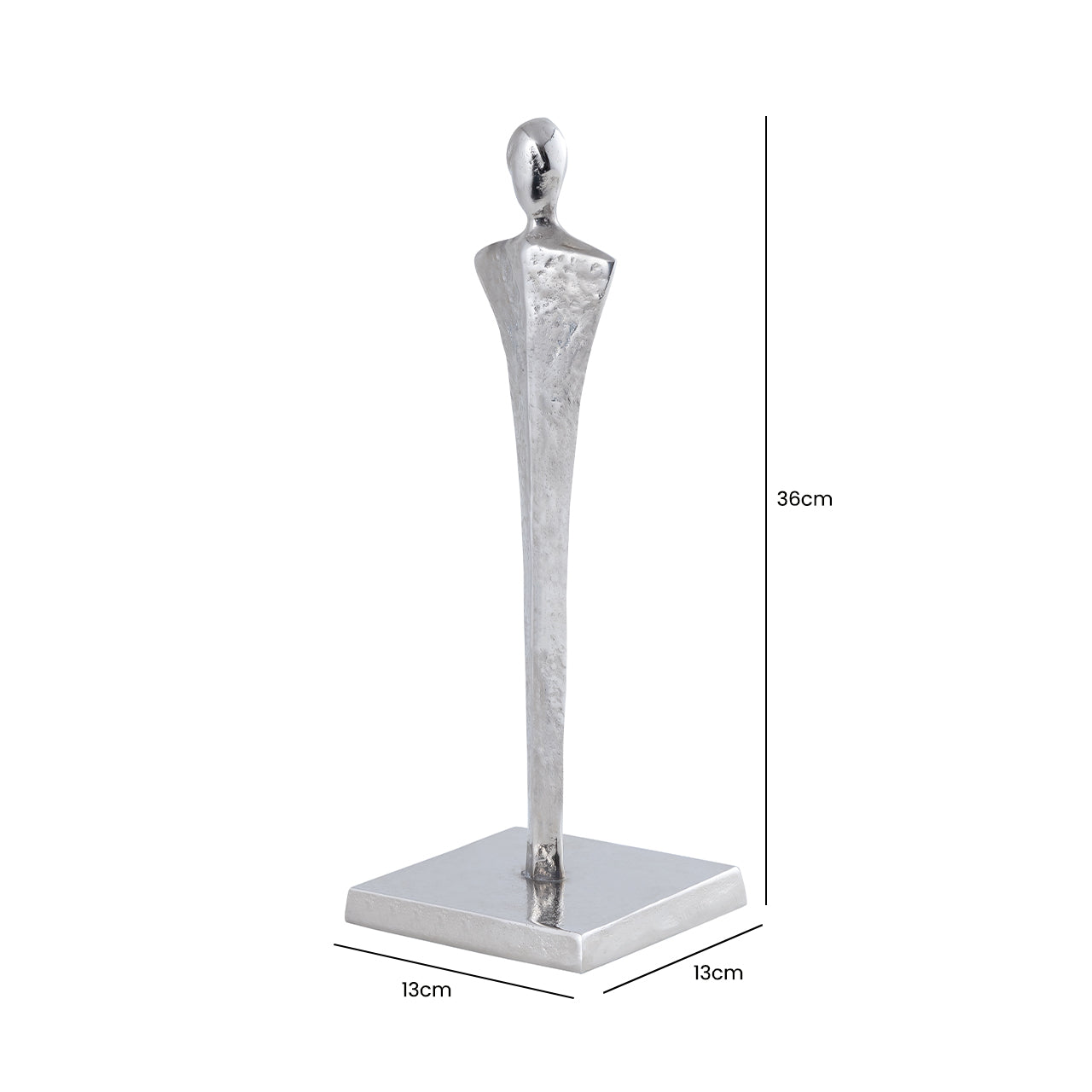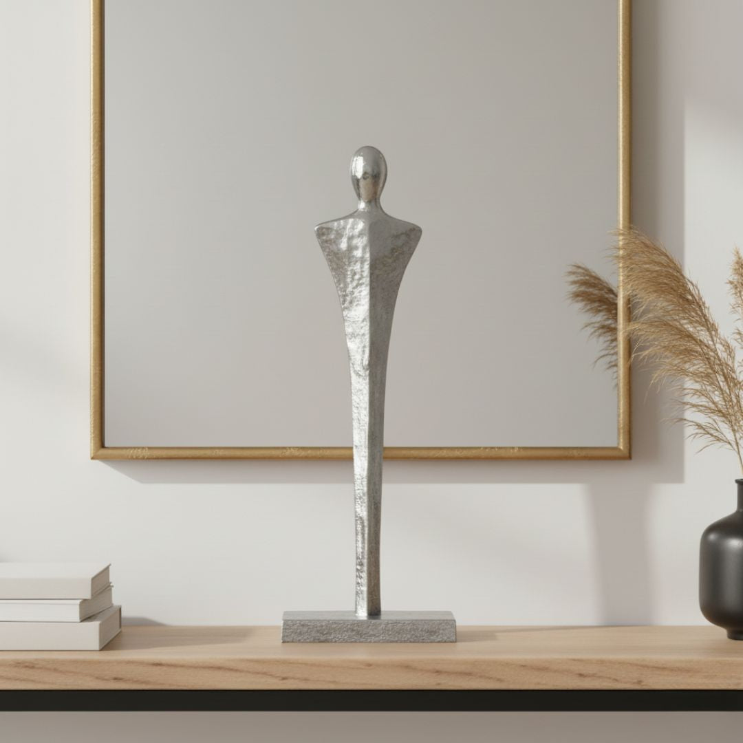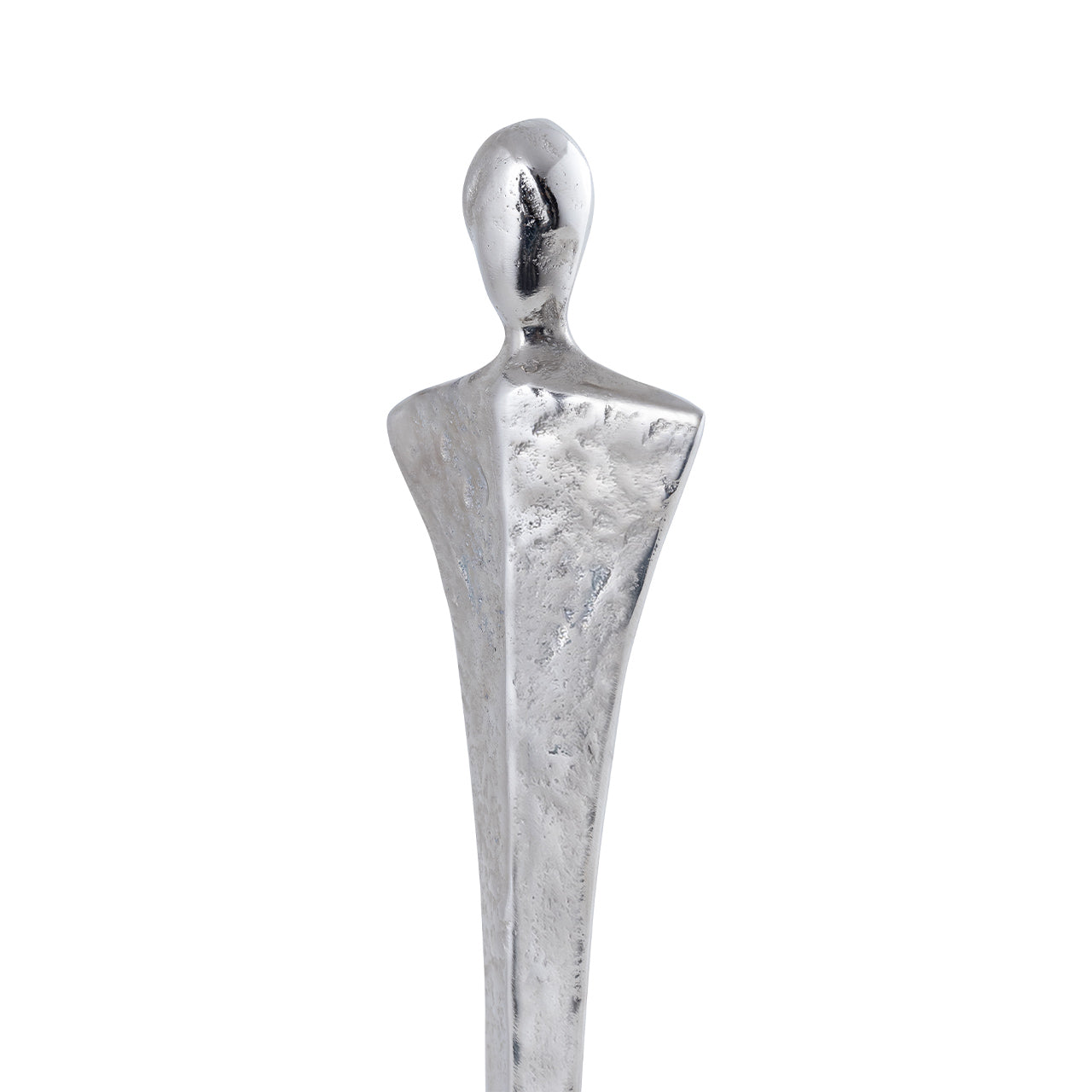 Add a modern and sophisticated touch to your décor with this 36cm nickel metal sculpture. Its sleek design and polished nickel finish make it a striking accent for shelves, tables, or mantels. Perfect as a standalone centerpiece or part of a curated display, it brings contemporary elegance and artistic flair to any space.
