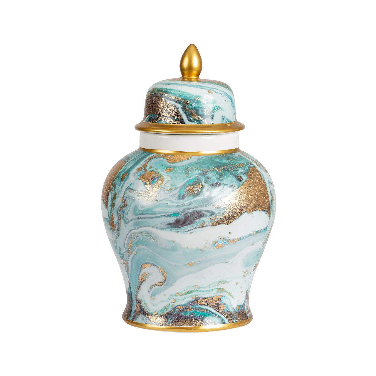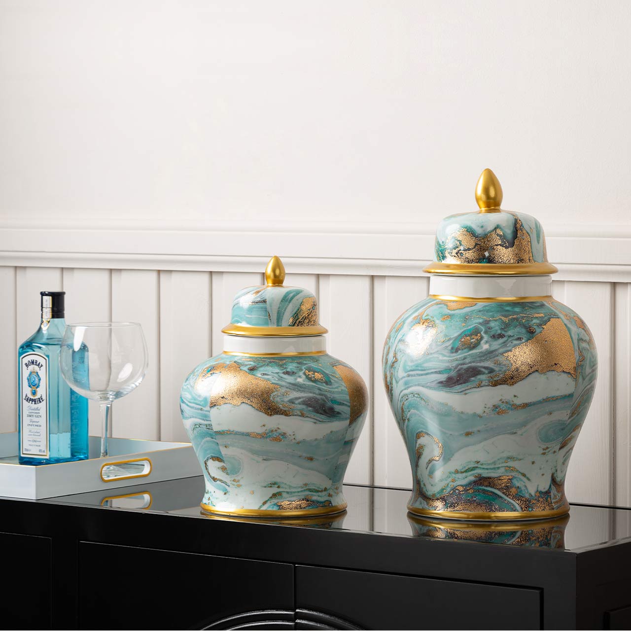 Bring artistic elegance to your home with this 40cm Blue, White, and Gold Abstract Ginger Jar. Featuring a vibrant blend of rich blue tones, crisp white accents, and luxurious gold detailing, this decorative jar creates a bold yet refined statement. Its abstract design adds contemporary charm, making it perfect for styling shelves, console tables, mantels, or as a striking centerpiece in any room.