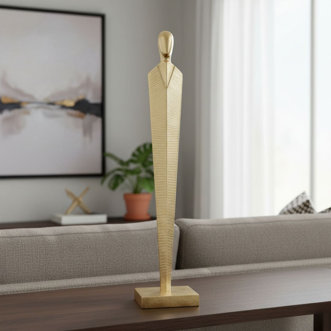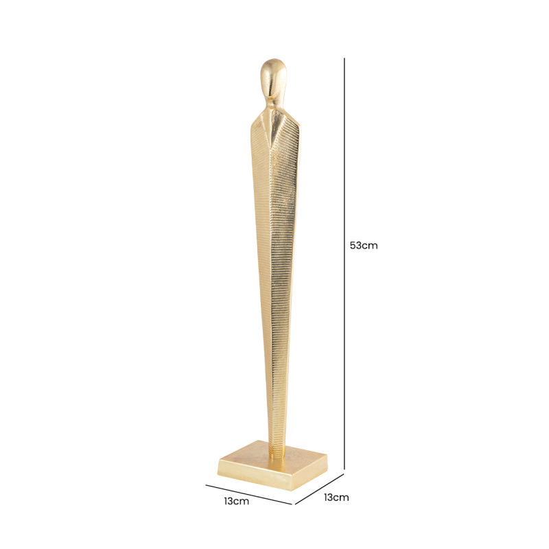 Elevate your décor with this 53cm gold metal sculpture. Its bold design and luxurious gold finish make it a captivating accent for shelves, tables, or mantels. Perfect as a standalone centerpiece or part of a curated display, it brings contemporary elegance and artistic sophistication to any space.