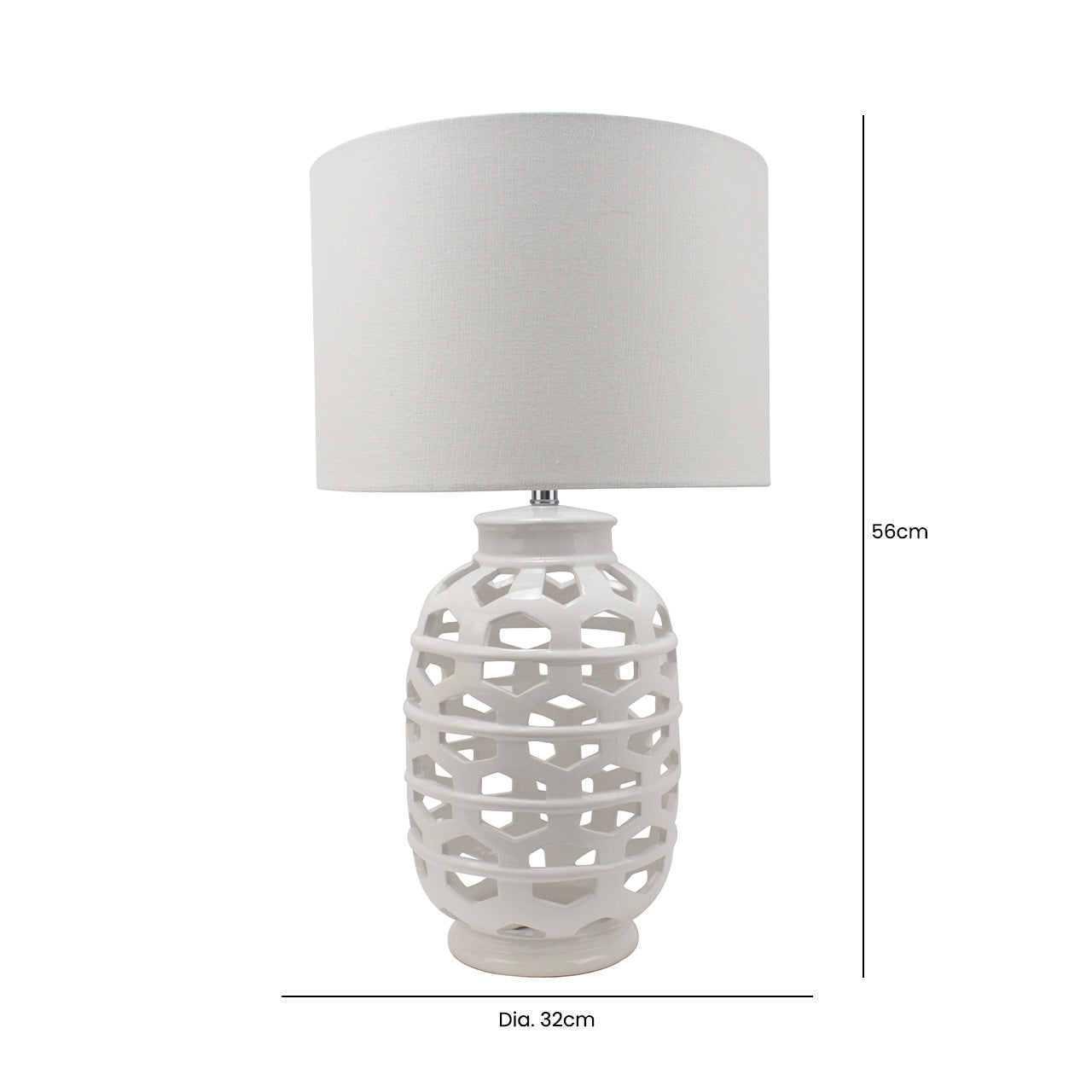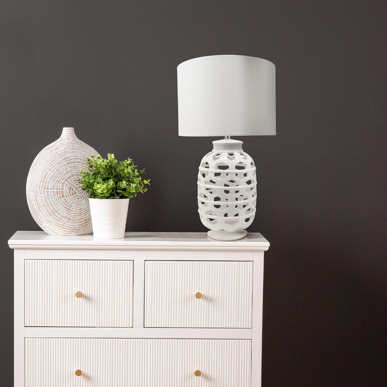 Elevate your interior with the refined simplicity of the 56cm White Ceramic Table Lamp. Designed with a smooth ceramic base and finished with a classic white linen shade, this lamp brings a clean, contemporary touch to modern bedrooms and living spaces. Its balanced proportions and neutral colour palette make it a versatile lighting solution, providing soft ambient illumination while complementing both minimalist and modern décor styles. Ideal for bedside tables, sideboards, or consoles, this lamp adds understated elegance and functional lighting to your home.