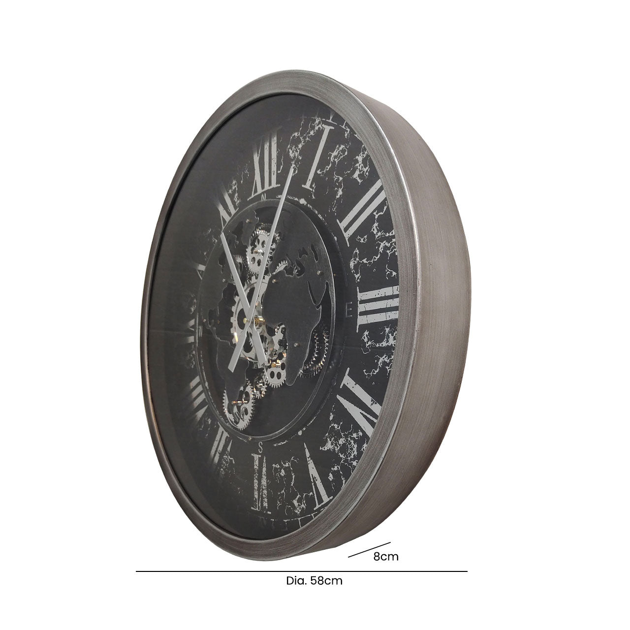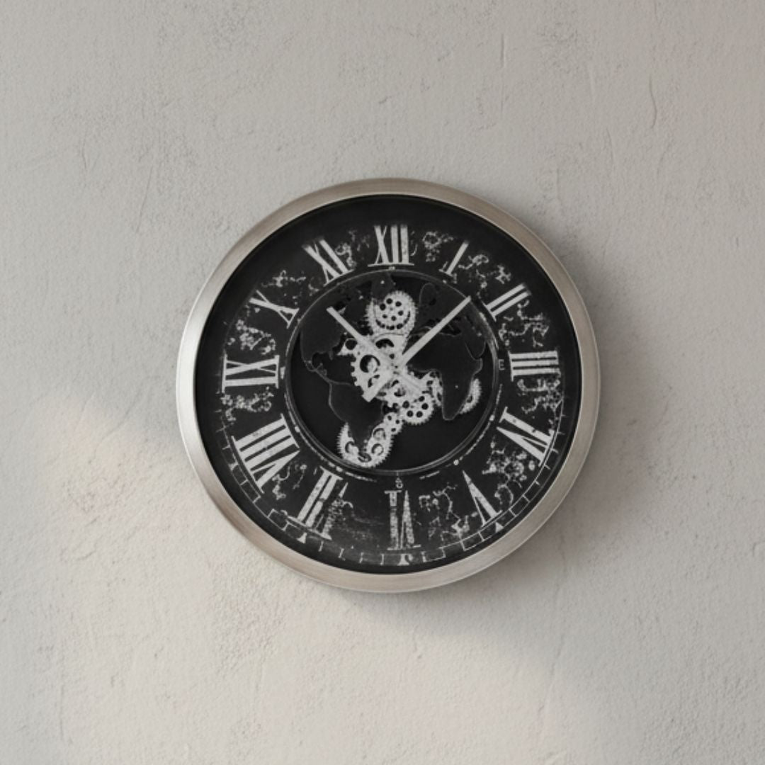 Make a bold statement with this 58cm black gears wall clock. Its sleek black finish and exposed gear design bring an industrial-chic vibe to any room. Perfect for living rooms, offices, or hallways, it combines functionality with modern décor, keeping time while adding a striking centerpiece to your space.