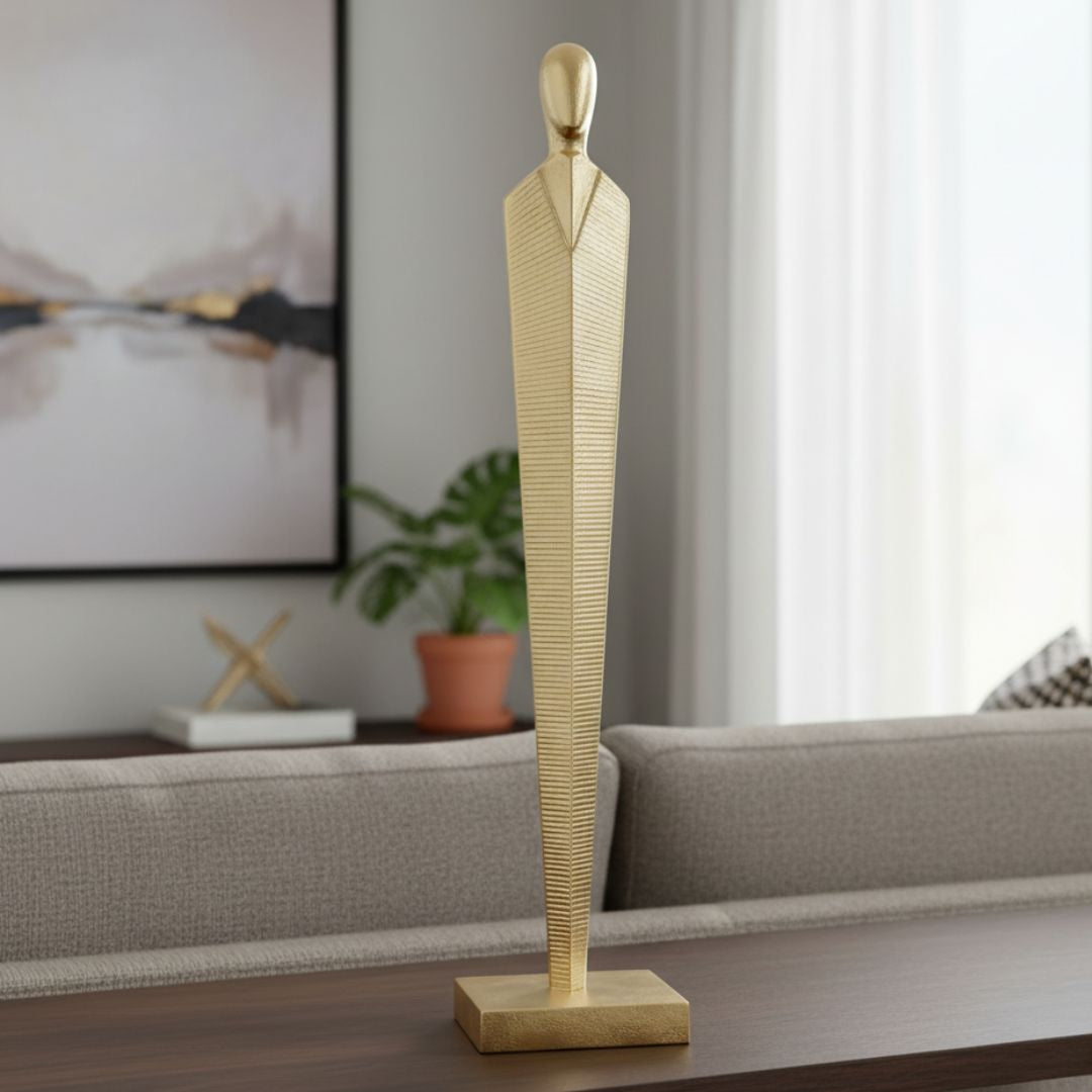 Elevate your décor with this 64cm gold metal sculpture. Its bold design and luxurious gold finish make it a captivating accent for shelves, tables, or mantels. Perfect as a standalone centerpiece or part of a curated display, it brings contemporary elegance and artistic sophistication to any space.