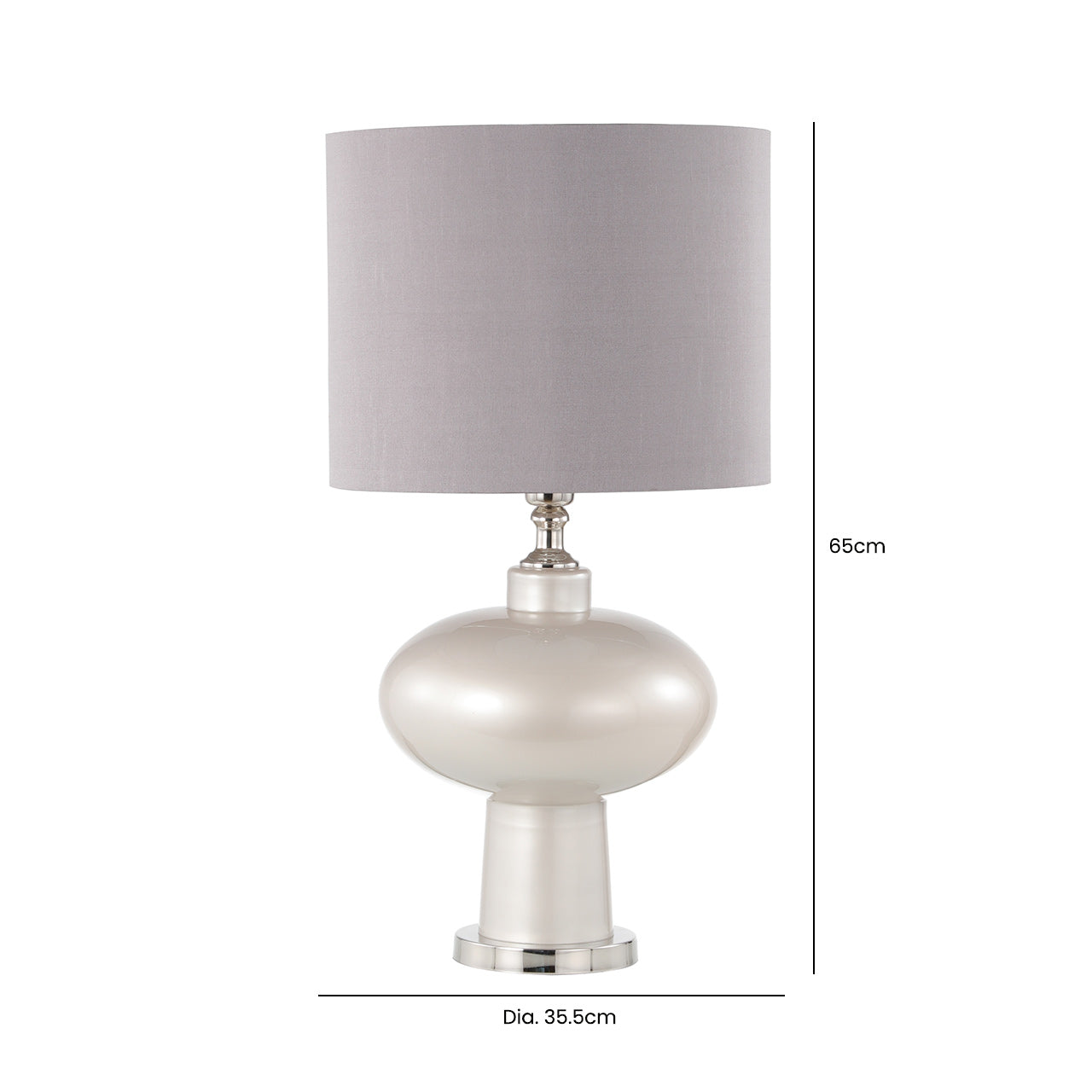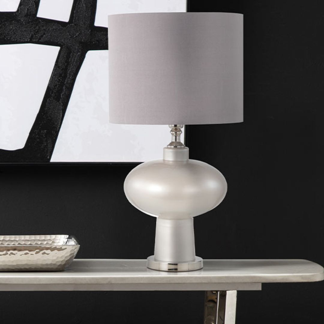 Add understated elegance to your home with the 65cm Opal Grey Glass Table Lamp with Grey Faux Silk Shade. Designed to create a calm and inviting atmosphere, this table lamp features a beautifully crafted opal grey glass base paired with a soft grey faux silk shade. The neutral tones and classic silhouette make it a versatile lighting solution for living rooms, bedrooms, bedside tables, or reading corners. Whether styled in modern or traditional interiors, this lamp delivers warm ambient lighting while enhancing the overall décor with timeless sophistication