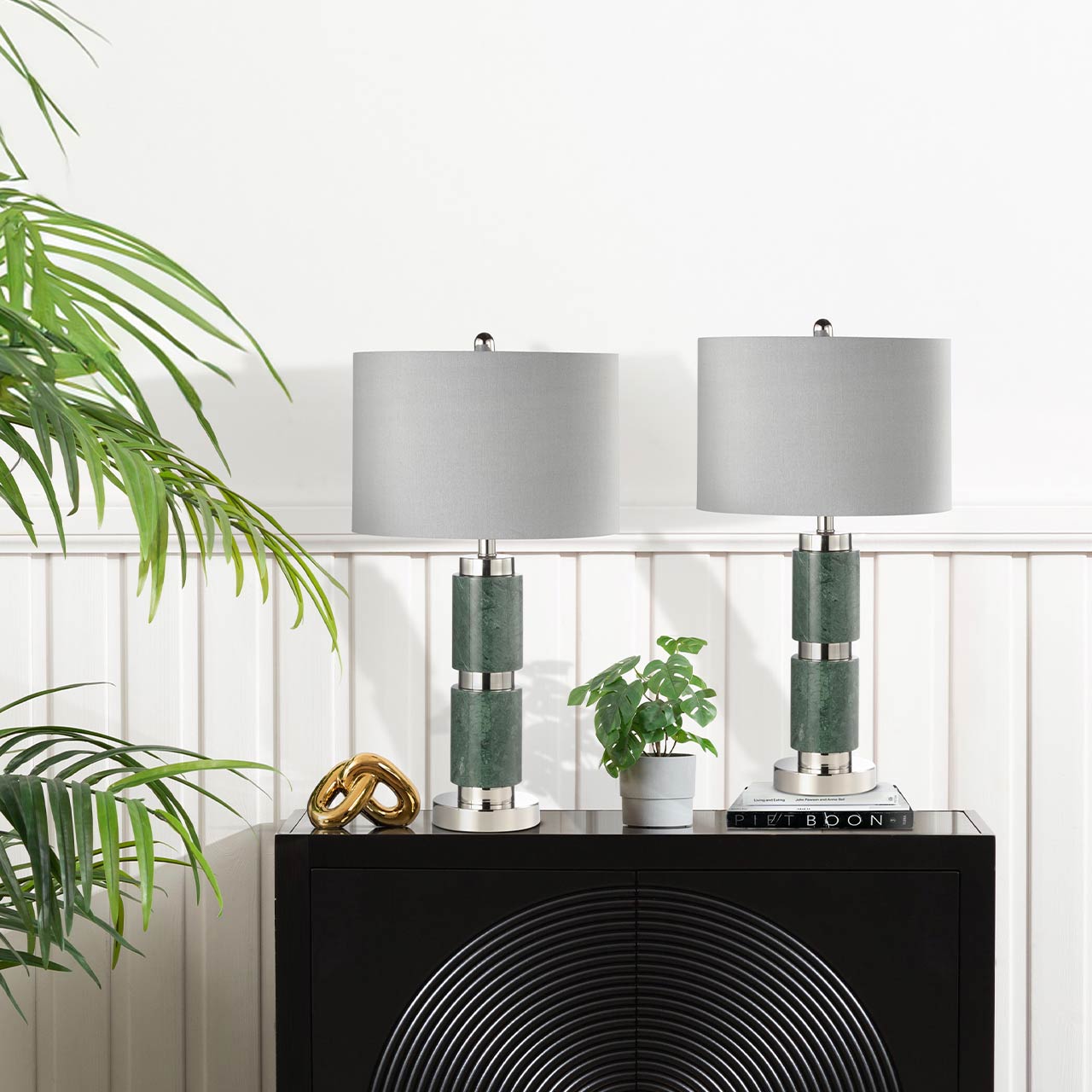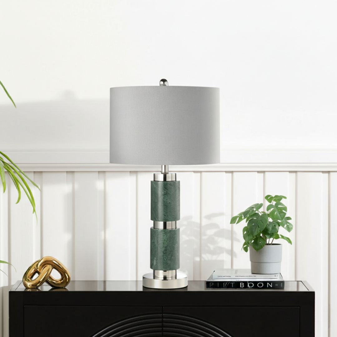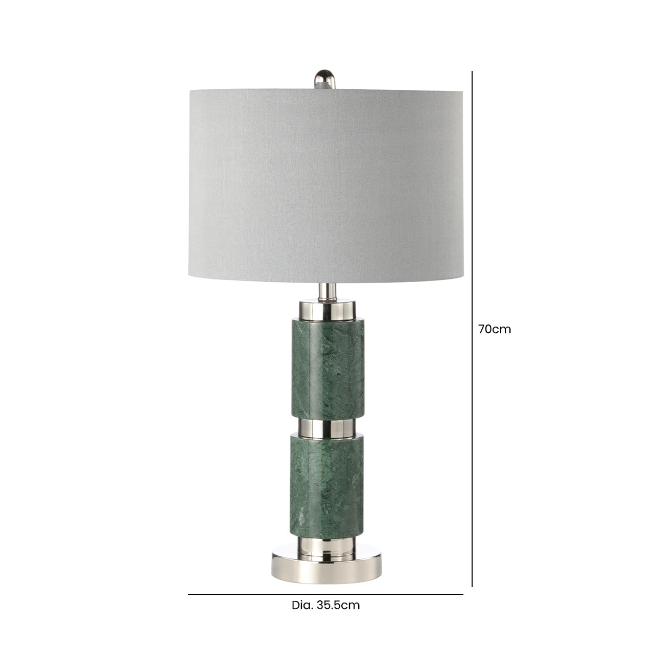Add refined elegance to your interior with the 70cm Dark Green Marble Table Lamp, a stylish lighting piece designed to elevate living rooms, bedrooms, and bedside spaces. Featuring a luxurious dark green marble base paired with a soft grey faux silk shade, this lamp blends classic sophistication with modern charm. Its balanced height makes it ideal for bedside tables, buffets, sideboards, or consoles, while the gentle ambient glow creates a warm and inviting atmosphere for everyday living.