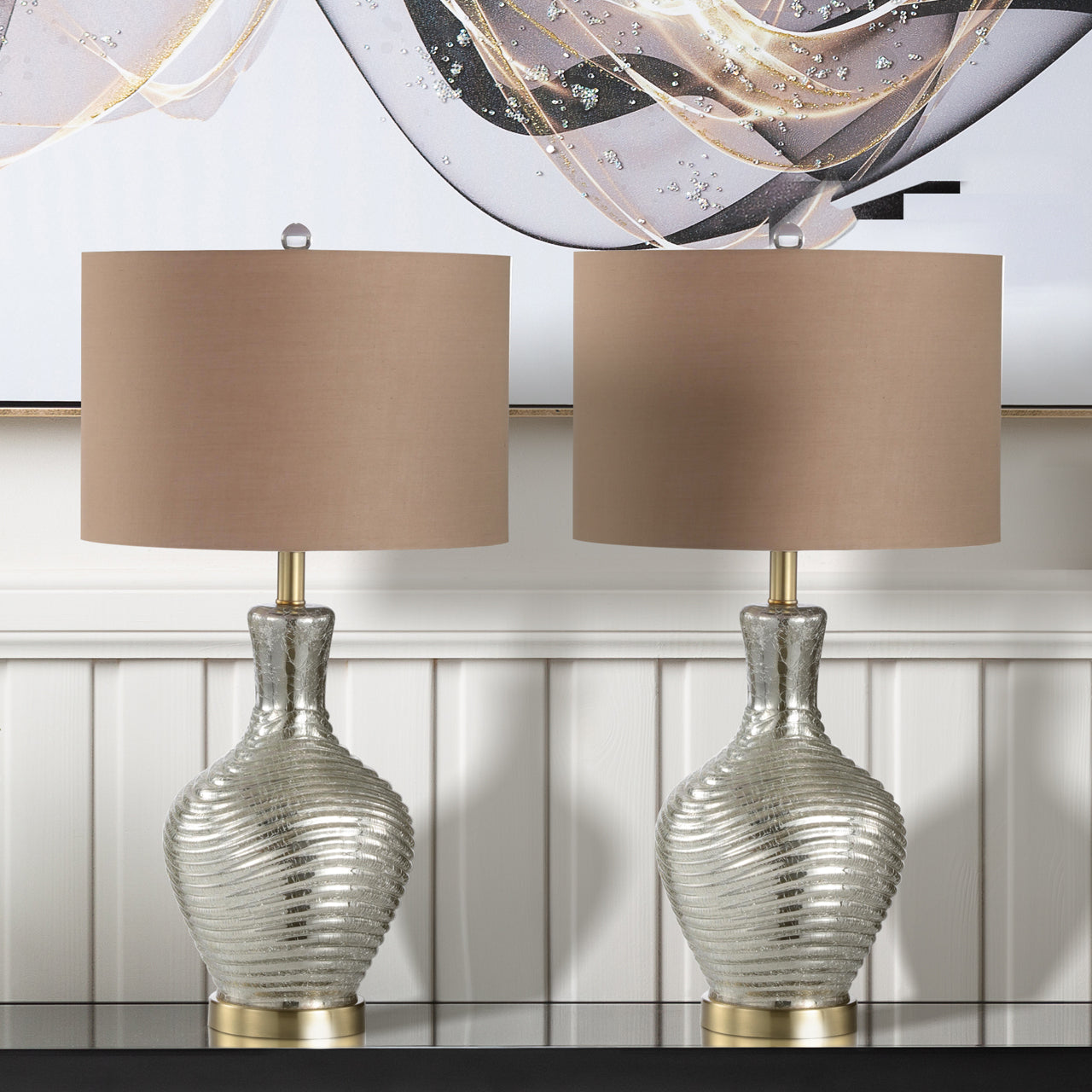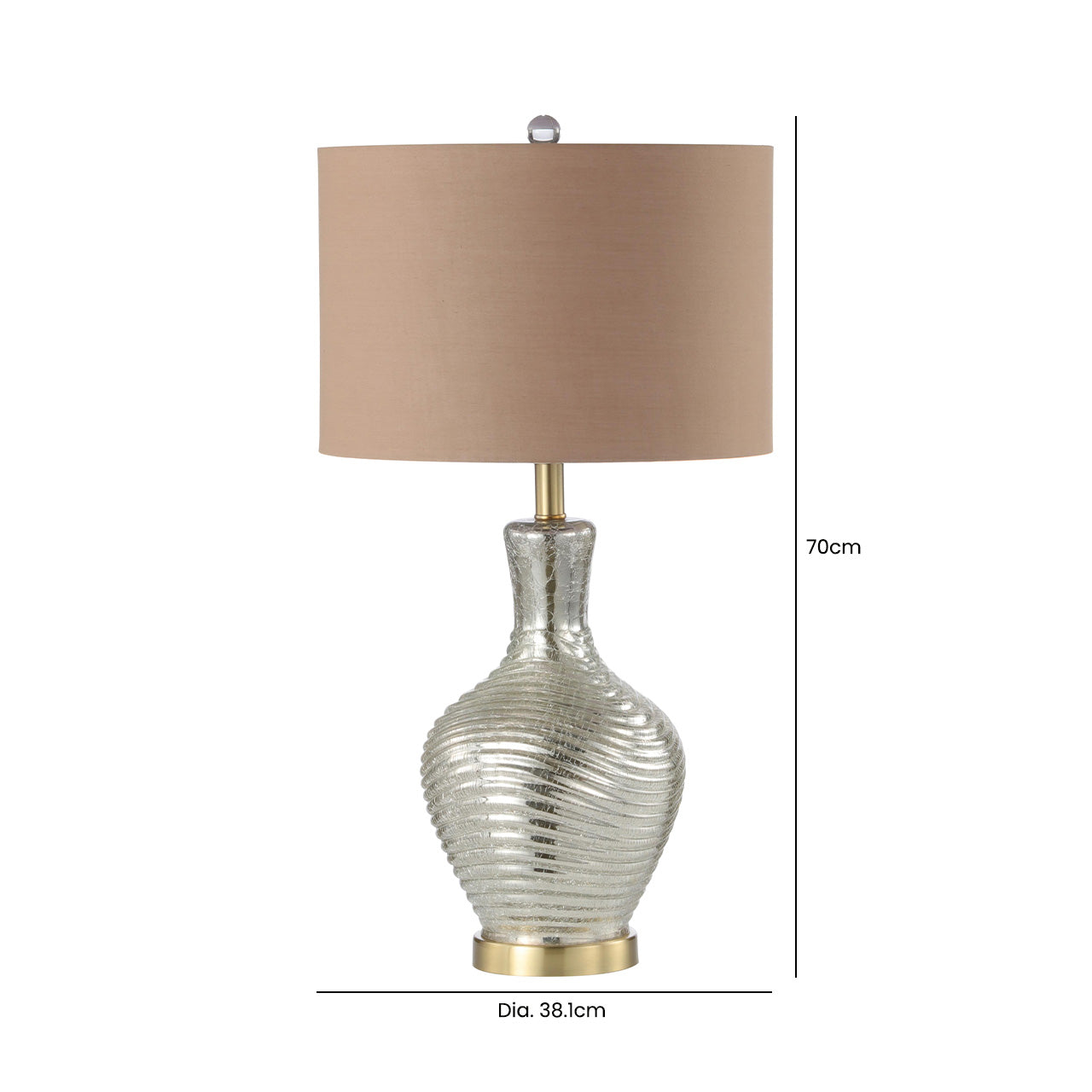 Bring refined elegance to your living space with the 70cm Silver Glass Table Lamp with Dark Taupe Linen Shade. Designed to complement both modern and classic interiors, this lamp features a sleek silver glass base that reflects light beautifully, paired with a rich dark taupe linen shade for a warm and inviting glow. Ideal for living rooms, bedrooms, bedside tables, or buffet settings, its balanced height and sophisticated finish make it both functional and decorative.