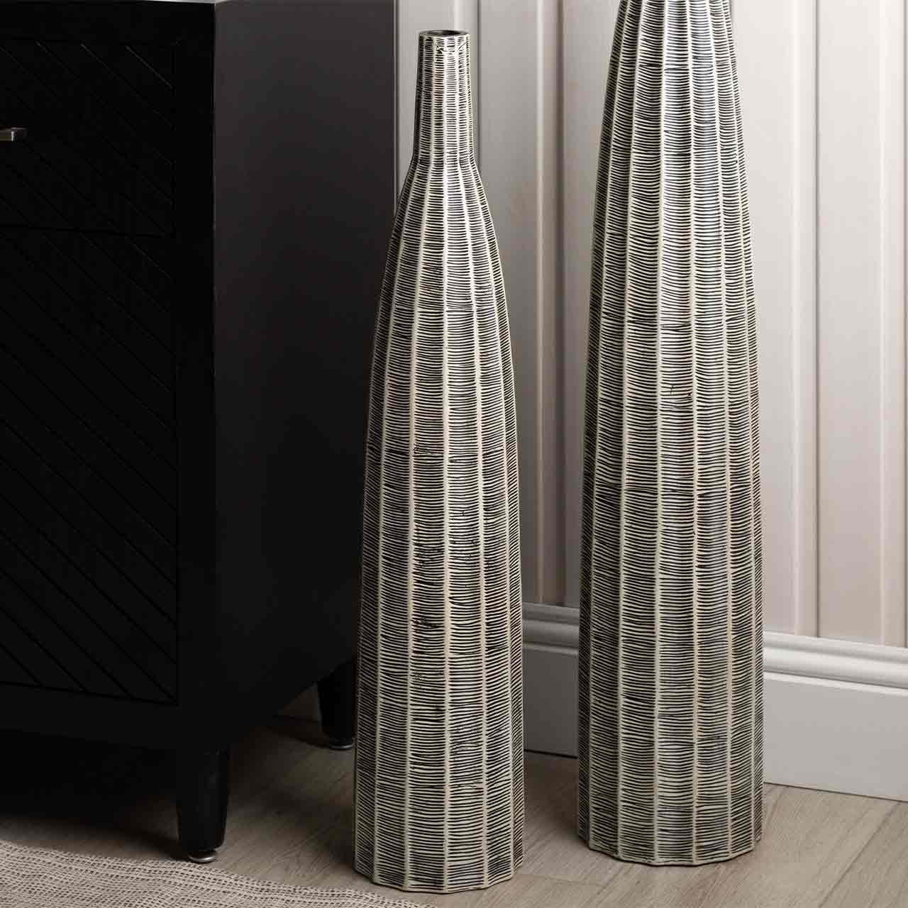 Make a bold design statement with the 76cm Black and White Lines Polyresin Floor Vase — a tall, contemporary décor piece that combines modern minimalism with timeless sophistication. Featuring a sleek matte black finish accented by fine white line detailing, this vase adds height, texture, and contrast to any space. Crafted from durable yet lightweight polyresin, it’s easy to move and style while maintaining a refined, premium look. Perfect for displaying pampas grass, dried stems, or artificial arrangements, it also stands beautifully on its own as a sculptural art piece. Whether placed in a living room, hallway, or entryway, this striking floor vase brings elegance and modern flair to your interior décor.