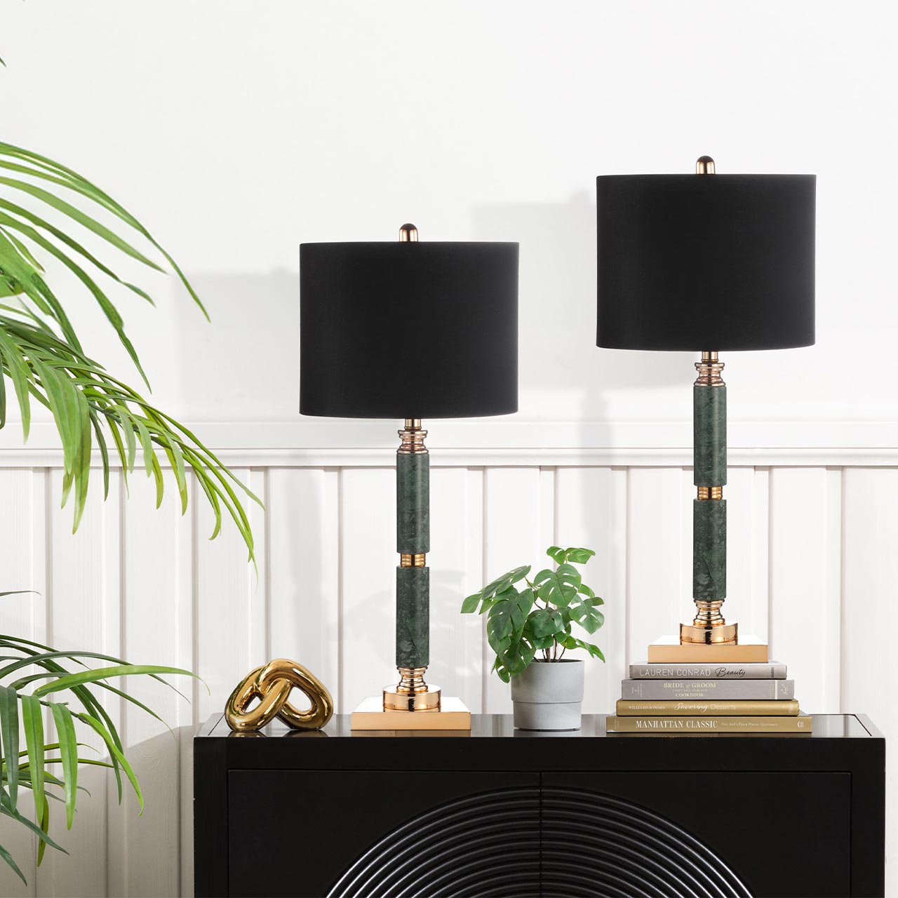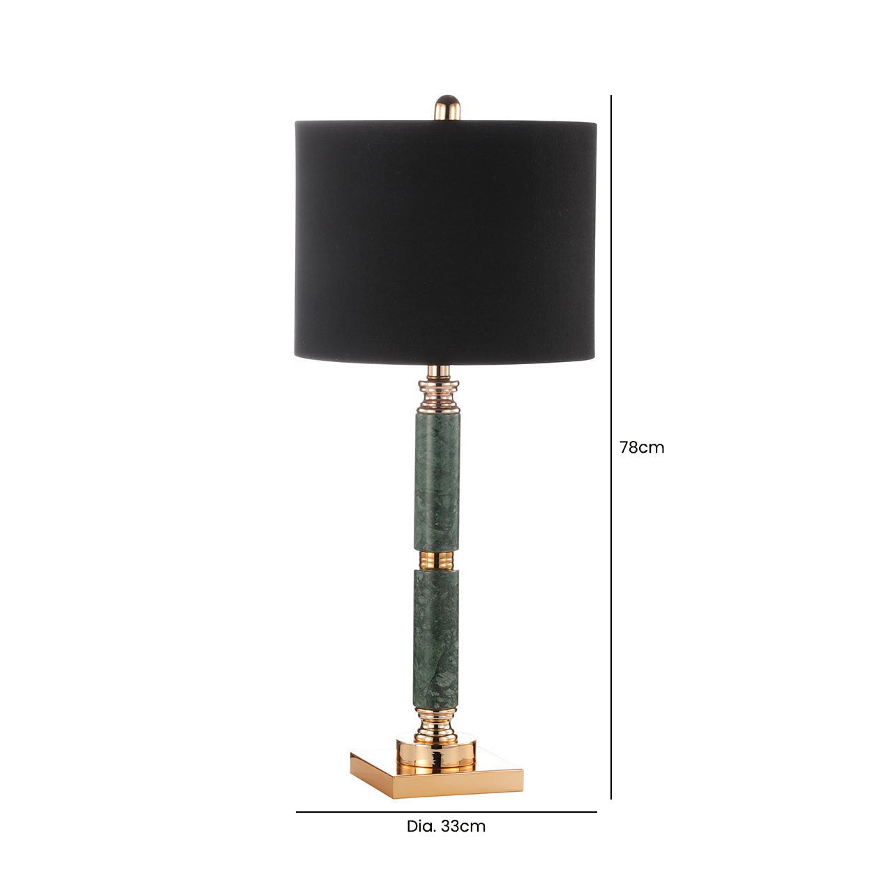Introduce refined elegance to your bedroom or living space with the 78cm Green Marble Table Lamp with Black Linen Shade. Designed to blend luxury with everyday functionality, this table lamp features a striking green marble base paired with a classic black linen shade that softly diffuses light. Its tall, balanced silhouette makes it ideal for bedside tables, buffet units, consoles, or sideboards, creating a warm and inviting atmosphere while elevating your interior décor with timeless sophistication.