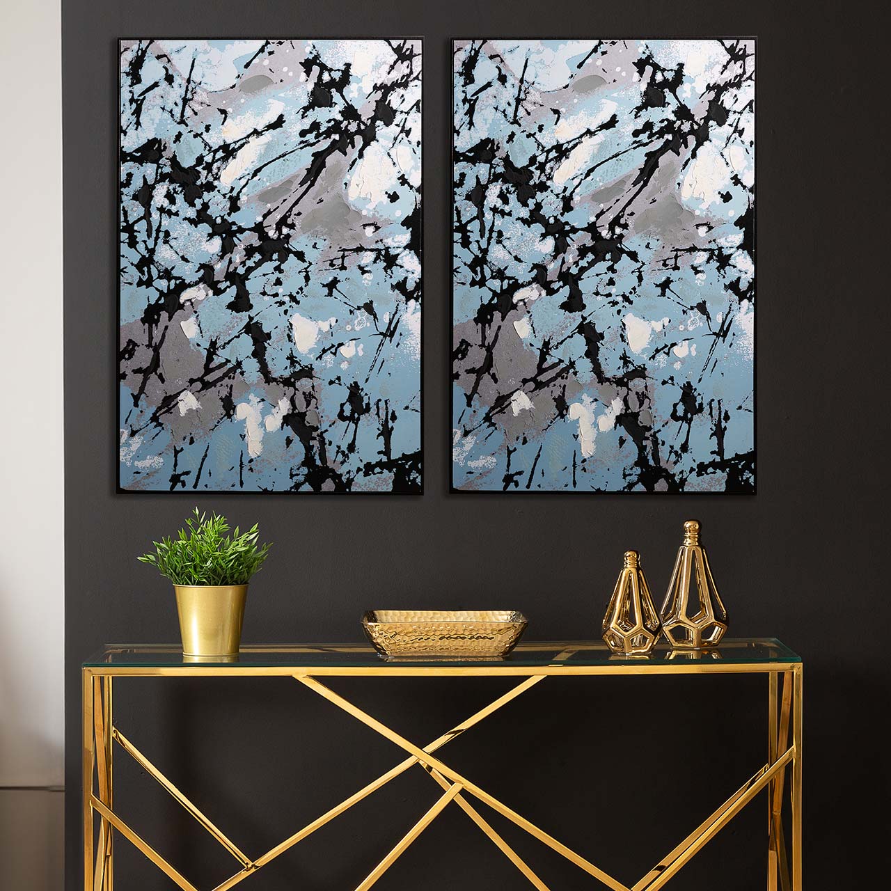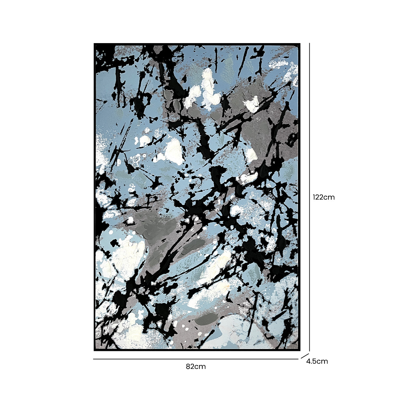 Make a statement with this 82x122cm framed blue, black, and grey splash abstract canvas. Its dynamic design and striking color palette create a captivating focal point for living rooms, bedrooms, or offices. Perfect for adding contemporary artistic flair, it brings energy, elegance, and modern sophistication to any space.