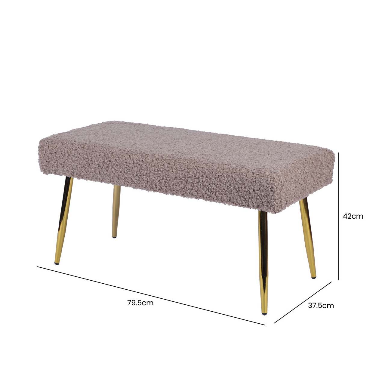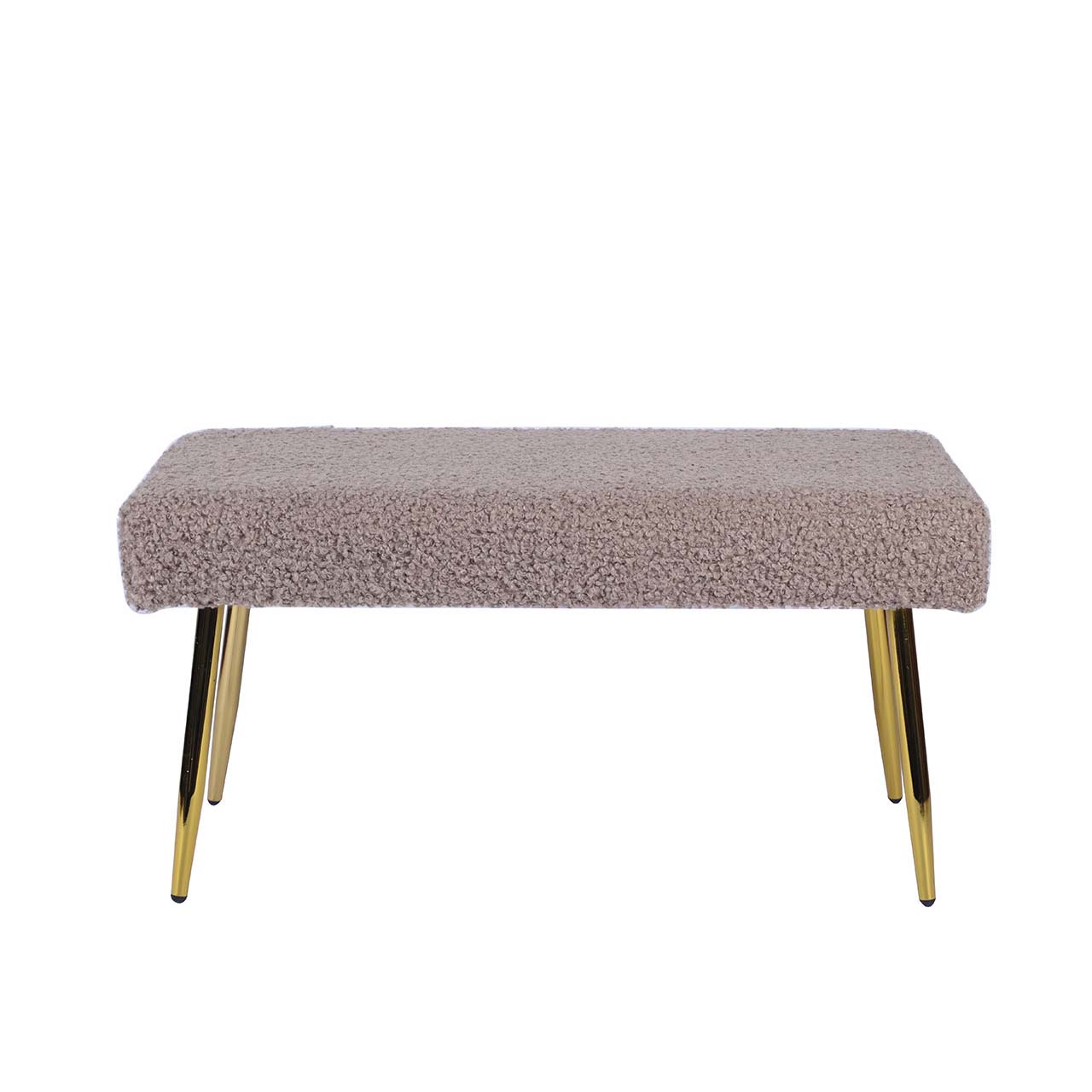 Discover the perfect blend of modern elegance and comfort with the Beige bouclé bench with Gold legs - KD. This stylish bench features a luxurious Beige bouclé fabric that adds texture and depth to any room, complemented by sleek Gold legs for a contemporary edge. The knock-down (KD) design ensures easy assembly, making it a convenient addition to your living space. Whether placed at the foot of your bed, in your entryway, or as a statement piece in your living area, this bench offers versatile functionality alongside its chic aesthetic. Its plush seating provides a cosy spot for relaxation, while the Gold legs add a touch of sophistication, making it an ideal choice for those looking to enhance their home with a piece that combines comfort with high-end design.