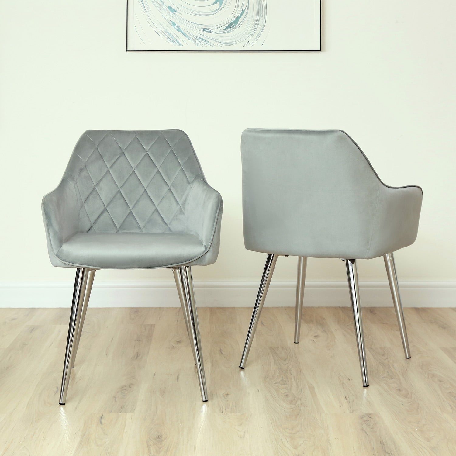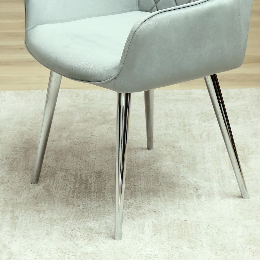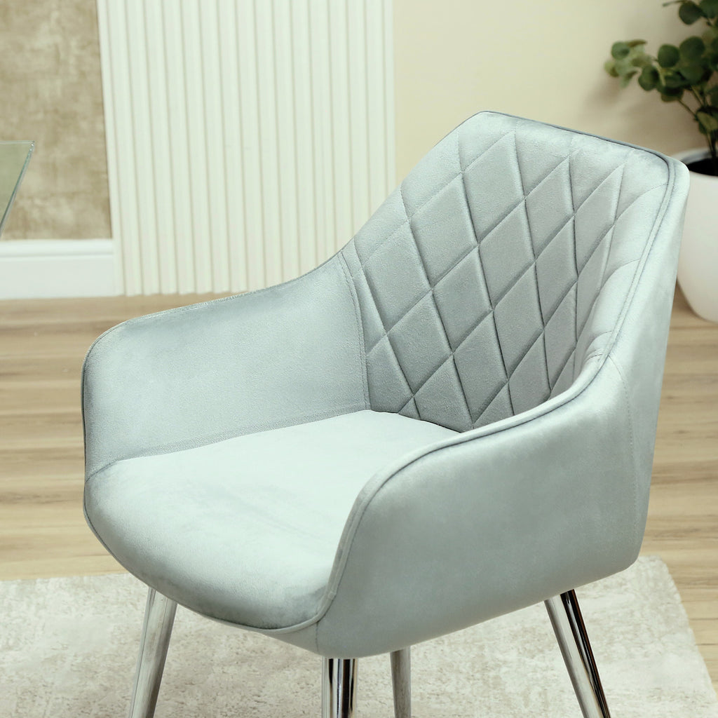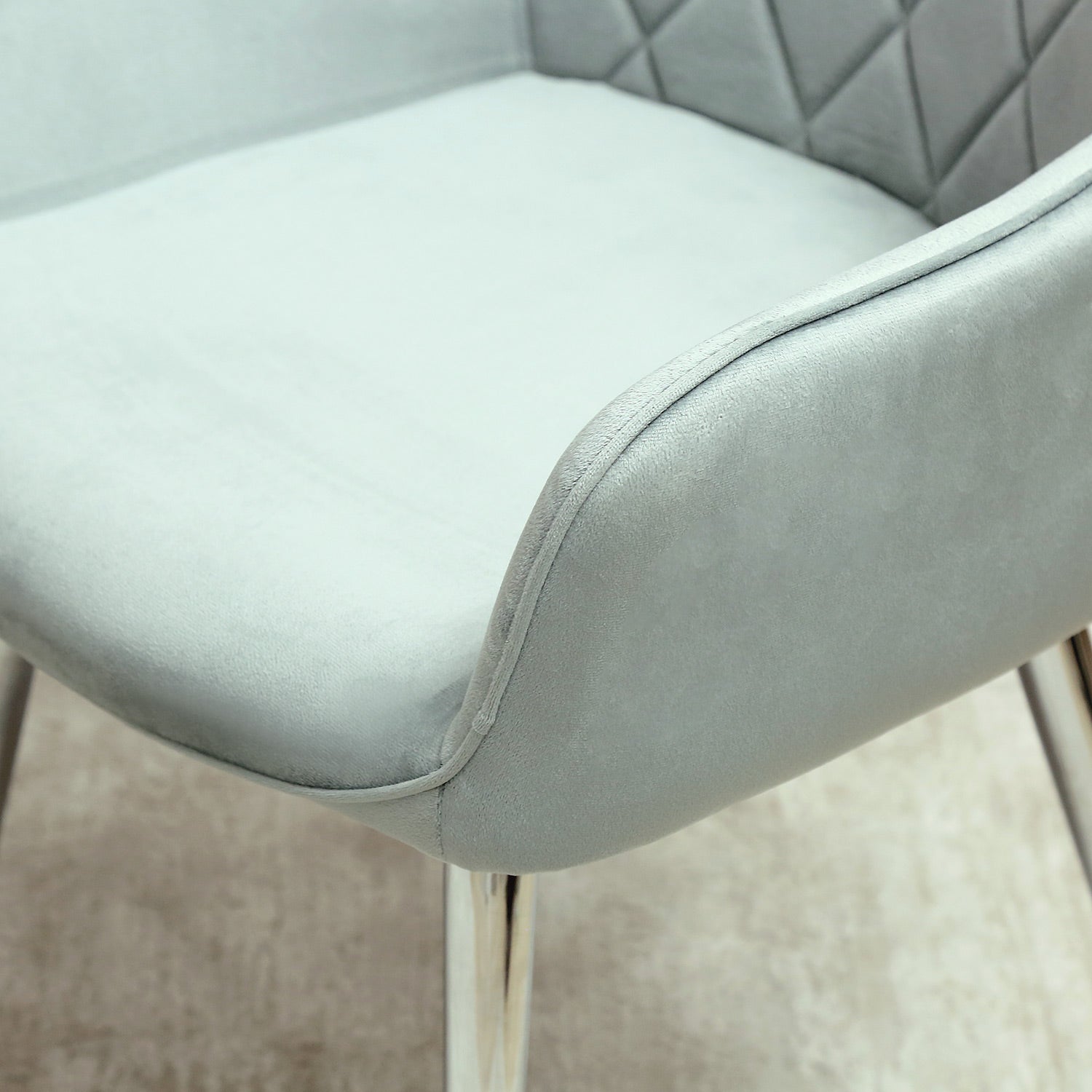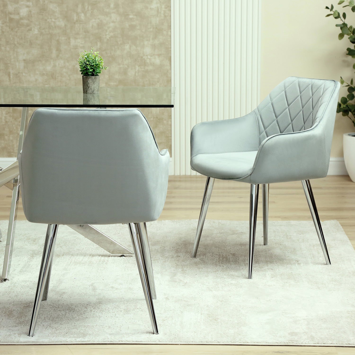 Perfect addition to any dining room or home office space. With its comfortable armrests, wide seat, and curved back, this chair provides ample space to sit back and relax during long meals or work sessions. The grey color and modern design make it a versatile piece that can complement a variety of decor styles. The chair is made from high-quality materials, ensuring durability and longevity.