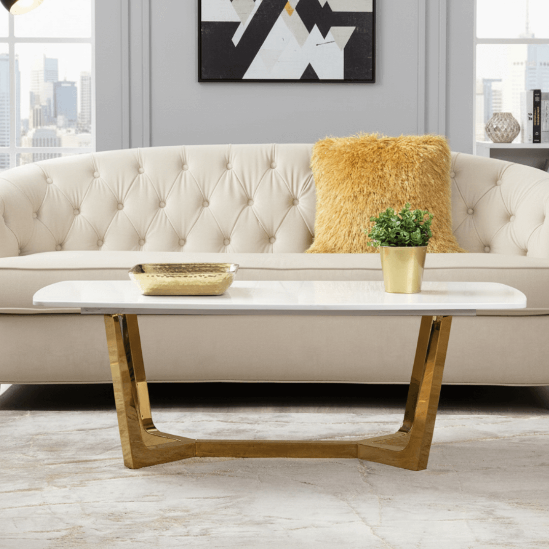Capella Large Coffee Table with White Marble Stone and Gold Stainless Steel Base