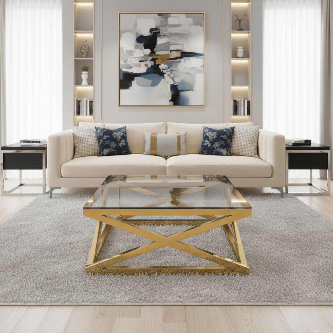 The coffee table is perfect for my living room. It’s stylish, sturdy, and the gold color is very sophisticated.