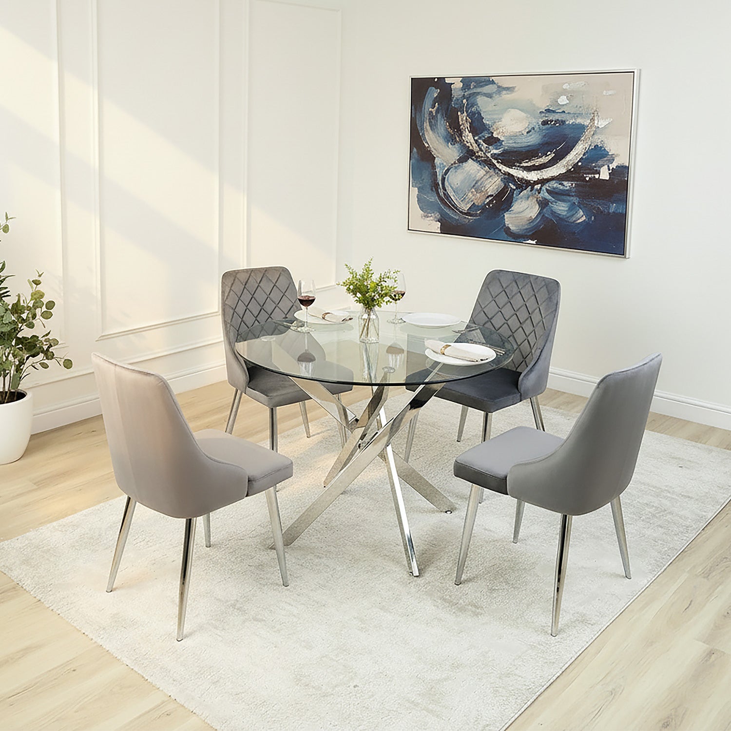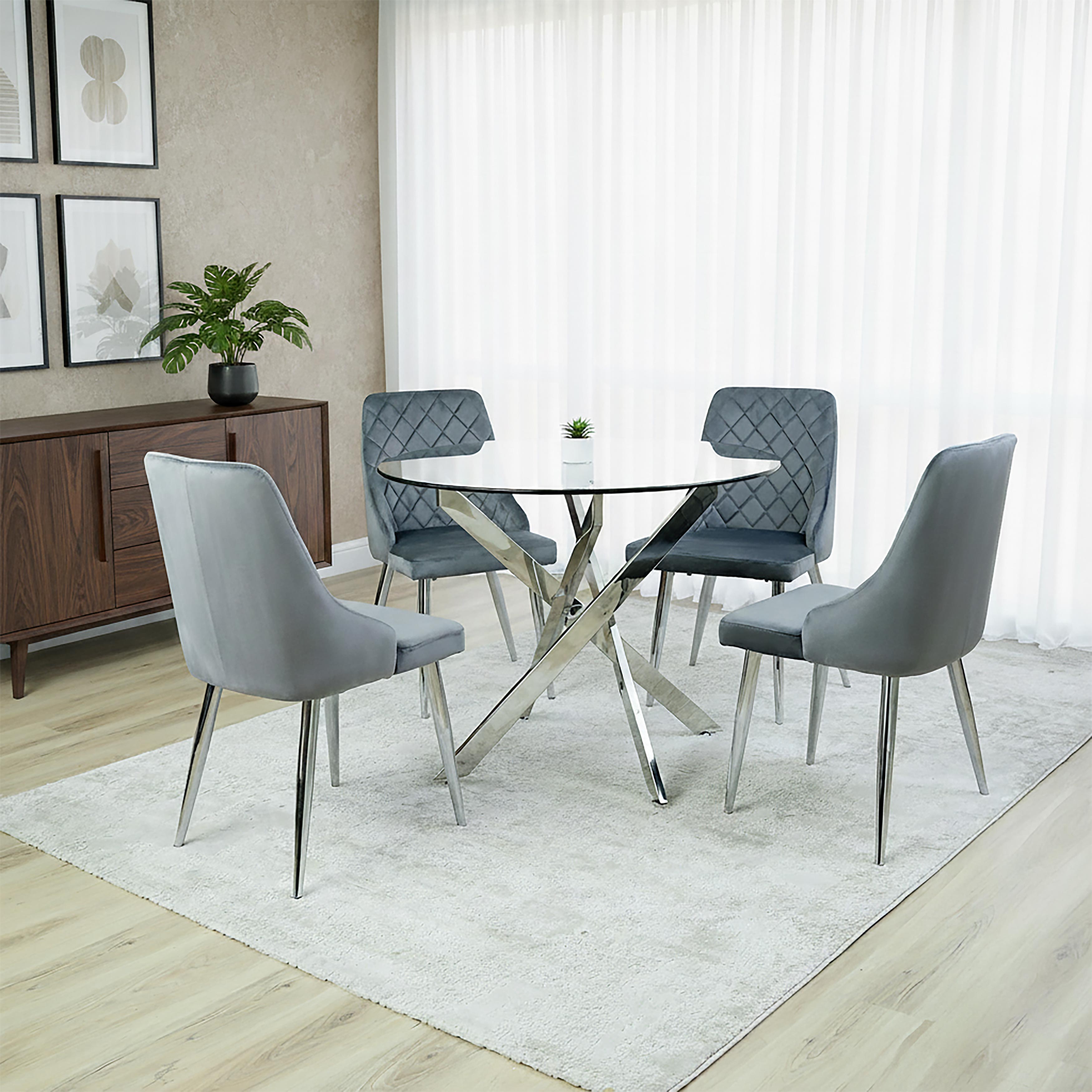 If you are looking for a dining table set, dining set, dinner room, table set, dining table set 4 seater, dining table chairs, 4 seater dining table, dining table set 4 seater, dining table and chairs, dining table height, dining room sets, dining room tables, dining room furniture, modern dining table set, 4 seater dining set, kitchen table, velvet chairs, cheap dining table set, glass dining table set, 4 chair dining table, dining table for 4, dining table chairs set of 4, decorate the dining room, chair and table set, dining table set for 4, round dining table for 4, round dining table for 4, modern dining set, dining set for 4, dining set for 4, Dining Table Set - Davos Chrome Round Dining Table + 4 Milan Grey Dining Chairs is your best choice.