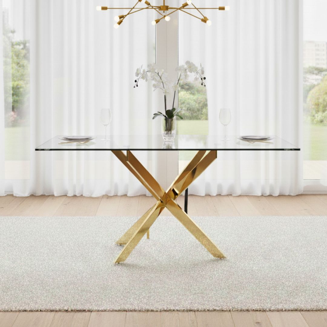 You can enhance your dining experience with this sleek and sophisticated large dining table. The table's wide tempered glass top and stainless steel legs with a swirl design give it a modern and stylish appearance, and the floor protectors ensure that your flooring will not be damaged. This table is an excellent addition to any home and is ideal for small spaces. It can comfortably sleep more than four people.