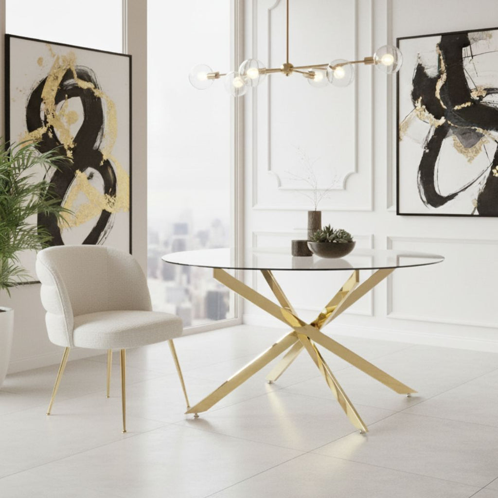 Experience luxurious dining with our Elegant Gold Large Round Dining Table, designed to infuse opulence and sophistication into any dining setting. Elevate your dining experience with this beautiful piece, blending the best of craftsmanship and design. Whether you're hosting a grand party or enjoying a quiet meal with loved ones, this Elegant Gold Large Round Dining Table will serve as a magnificent centrepiece in your dining room.