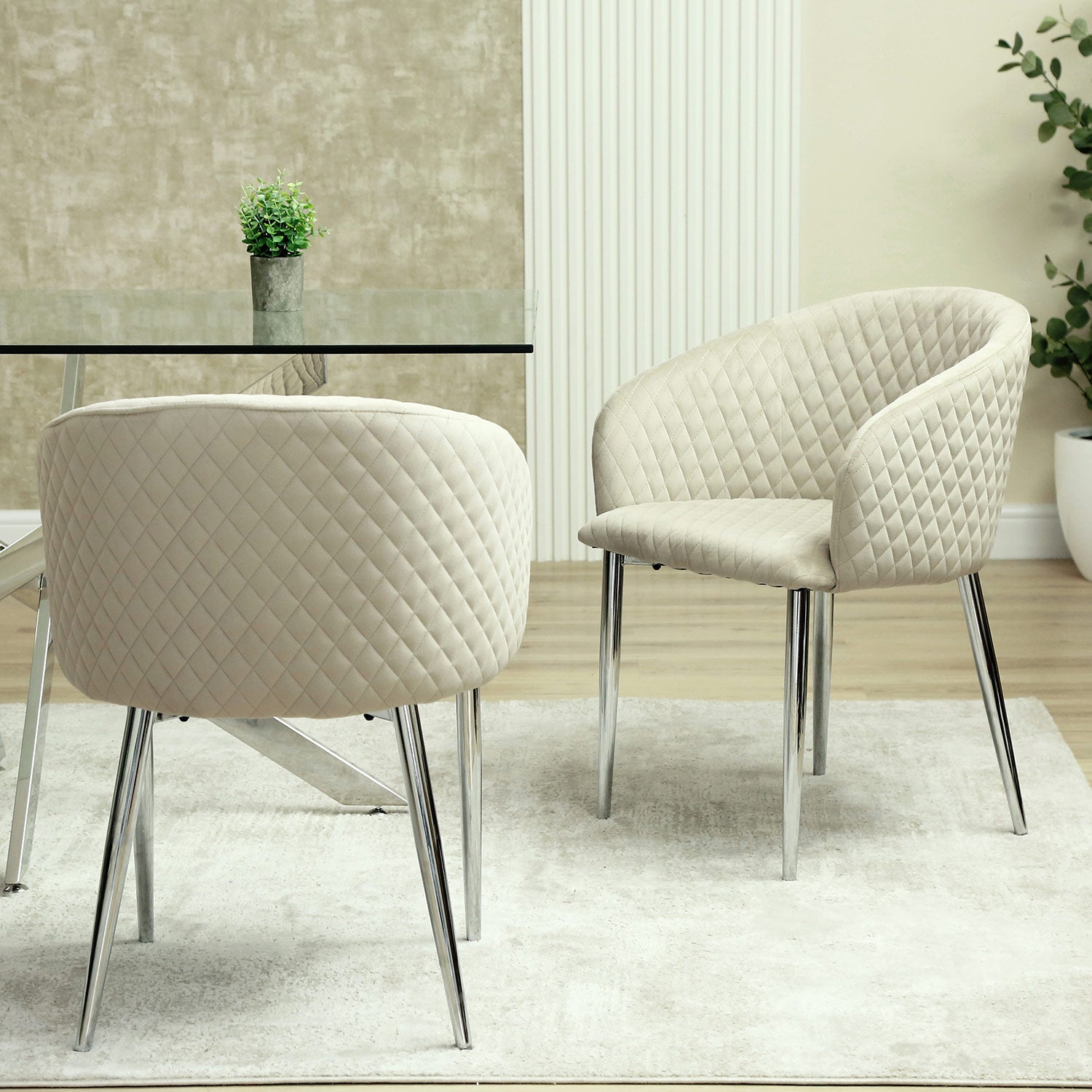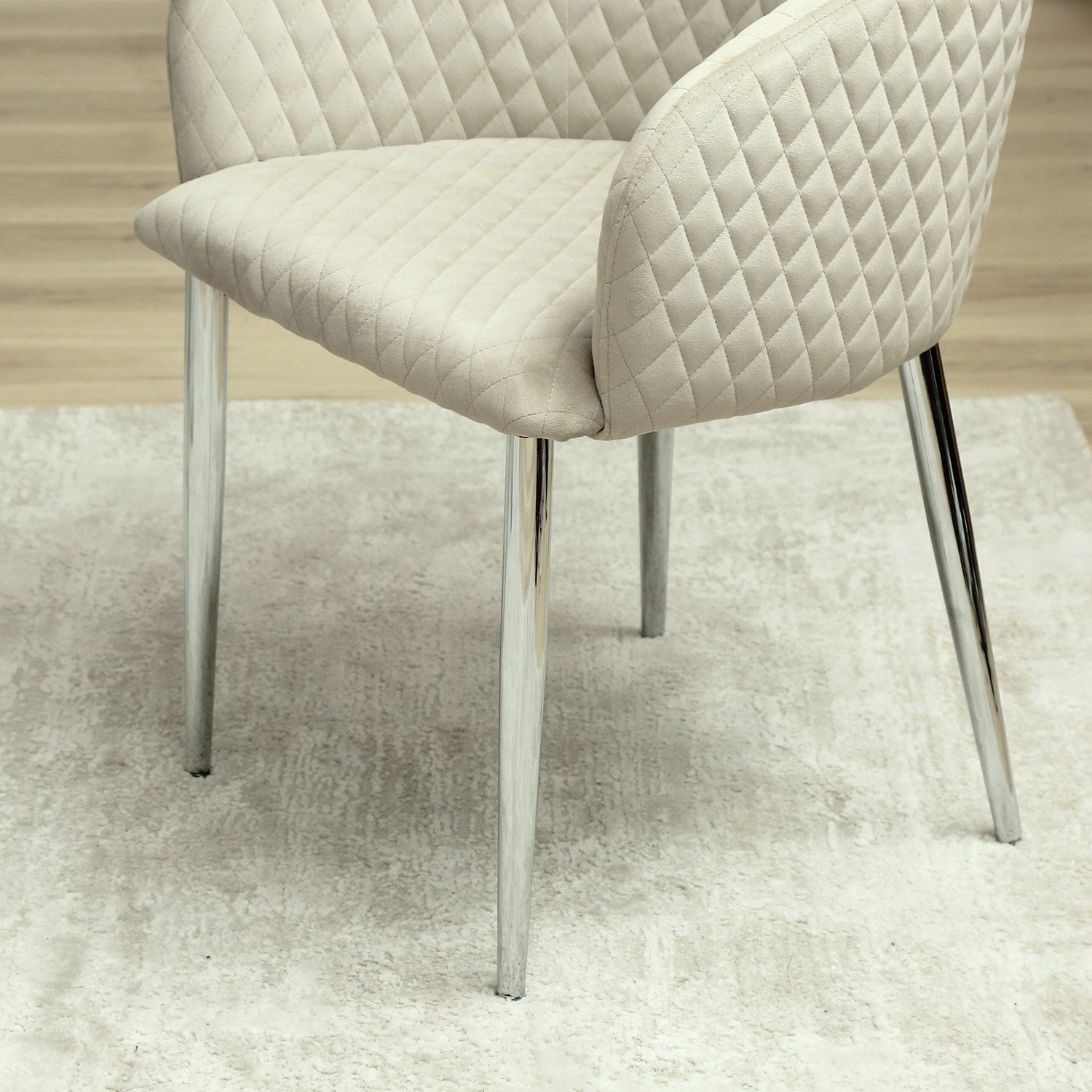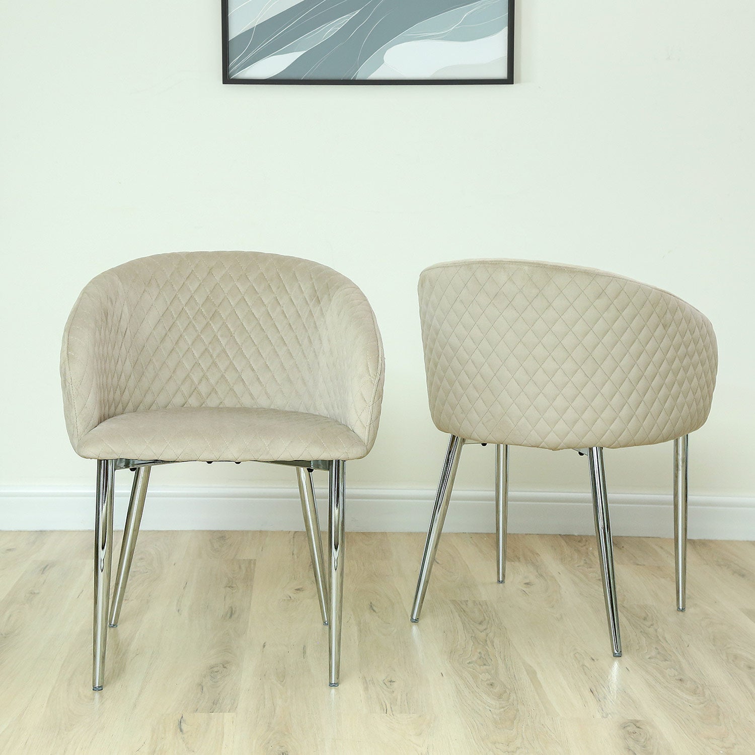 This Set of two dining chair adds a touch of luxury to any dining space, combining comfort and style seamlessly. The taupe velvet upholstery exudes a sense of warmth and elegance, creating a cozy and inviting atmosphere. The chrome-finished legs beautifully complement the taupe velvet, adding a contemporary touch to the overall design. Crafted with mindfulness, this dining chair features a sturdy construction that ensures durability and stability.