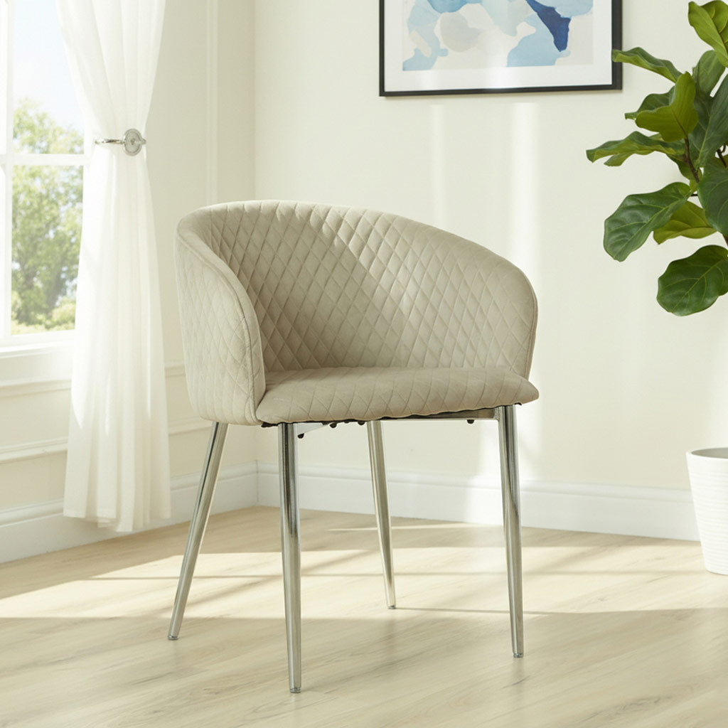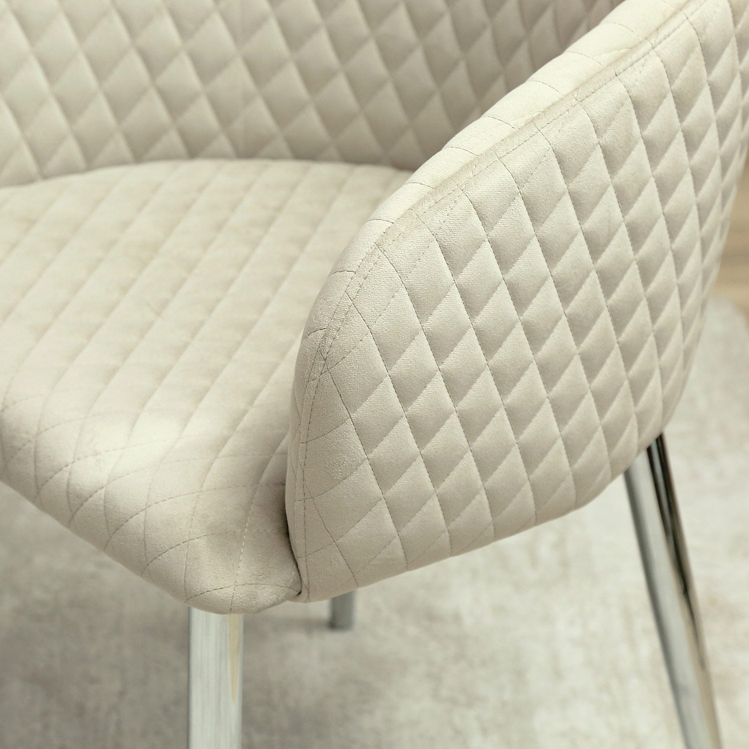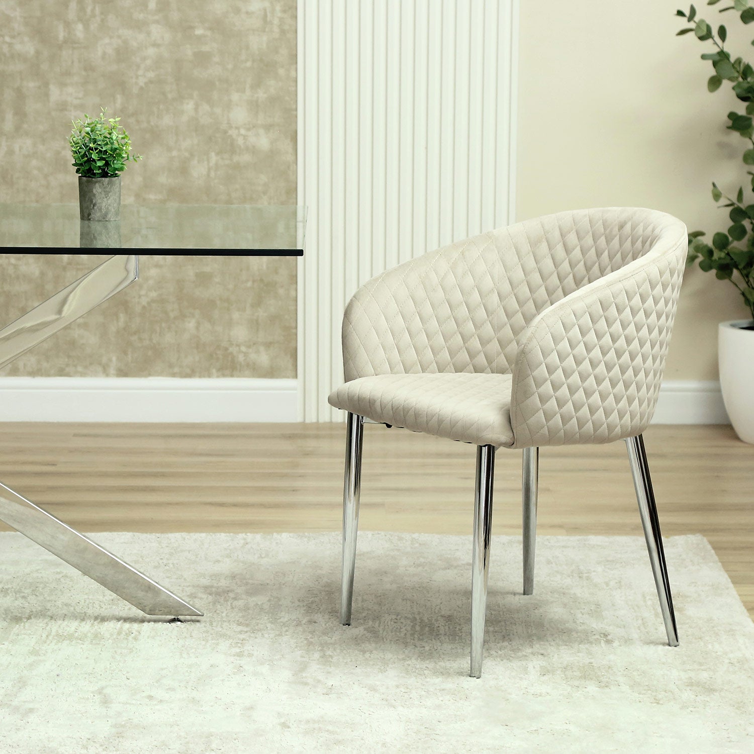 This Set of two dining chair adds a touch of luxury to any dining space, combining comfort and style seamlessly. The taupe velvet upholstery exudes a sense of warmth and elegance, creating a cozy and inviting atmosphere. The chrome-finished legs beautifully complement the taupe velvet, adding a contemporary touch to the overall design. Crafted with mindfulness, this dining chair features a sturdy construction that ensures durability and stability.