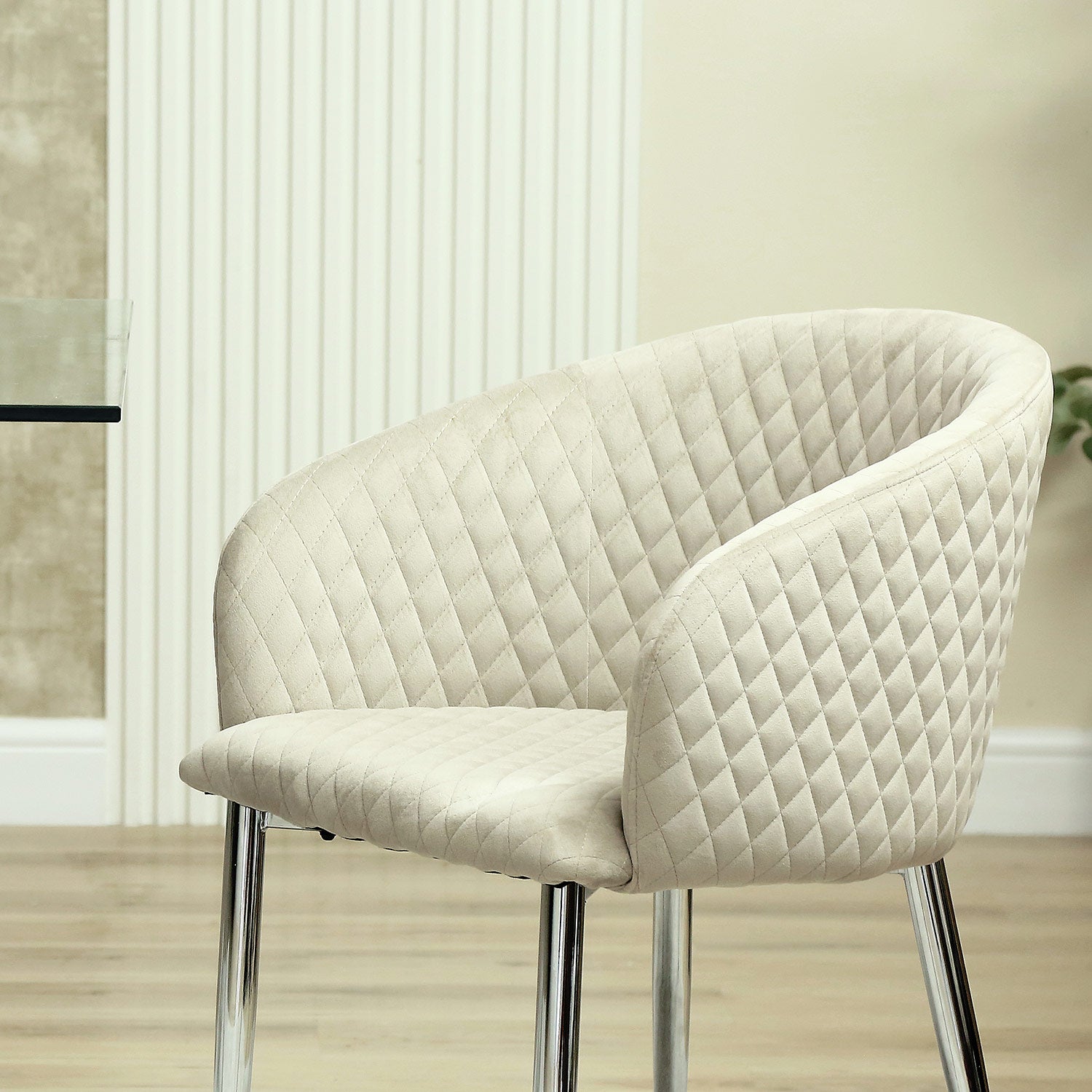 If you are looking for a contemporary-designed taupe velvet dining chair, your quest concludes with the Criss-cross Taupe Velvet Dining Chair by Vanity Living. Discover a variety of taupe velvet dining chairs available in sets of 4 and set of 6. Additionally, delve into our convenient dining set bundles, meticulously crafted to effortlessly enhance the ambiance of your dining room.
