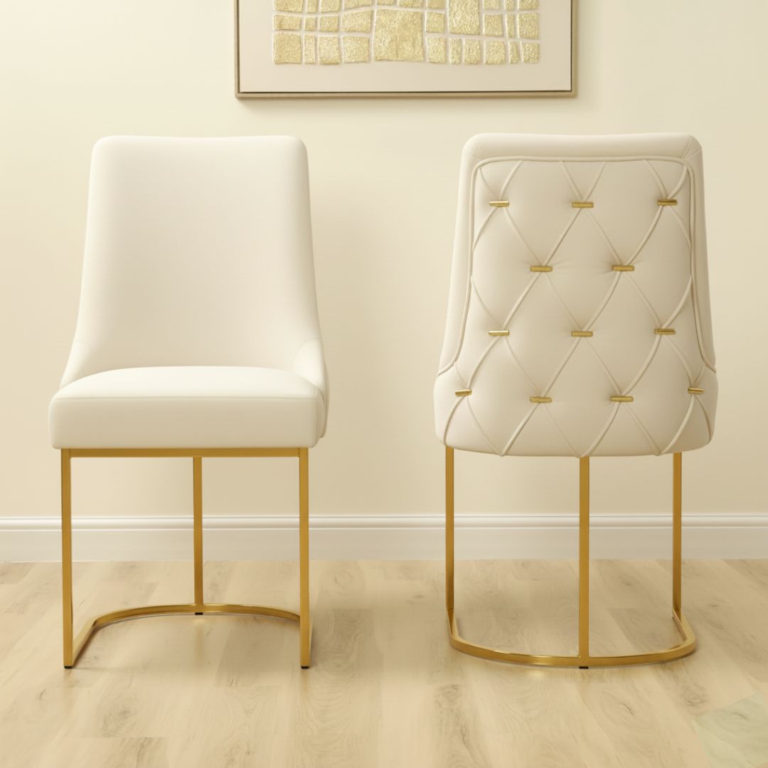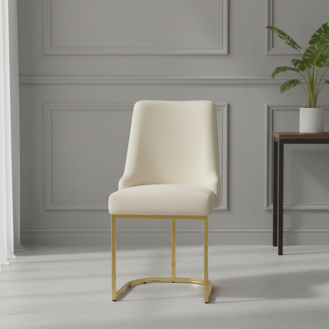 Elevate your dining space with the Bianca Cream Dining Chair, upholstered in premium velvet and finished with sleek gold legs for a touch of refined luxury.