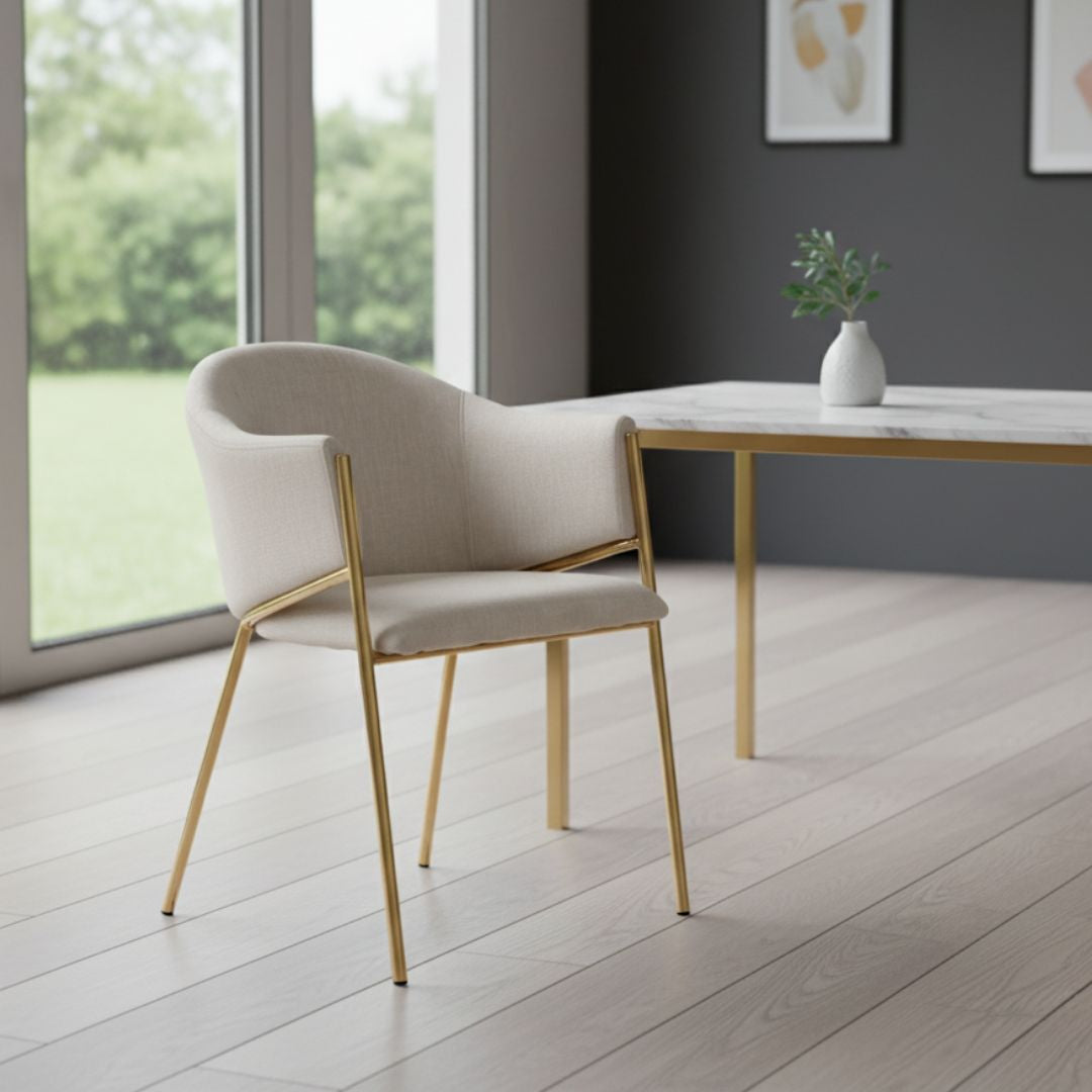 Velvet Cream Dining Chair with Gold Legs