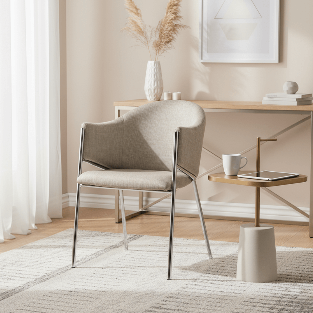 Introducing our exquisite Premium Velvet Taupe Accent Dining Chair, where sophistication meets comfort in every detail. The lush taupe velvet upholstery exudes a sense of understated luxury, inviting you to indulge in long, leisurely meals and engaging conversations. The sleek chrome legs add a contemporary touch, infusing your dining space with modern elegance that seamlessly complements any interior decor.