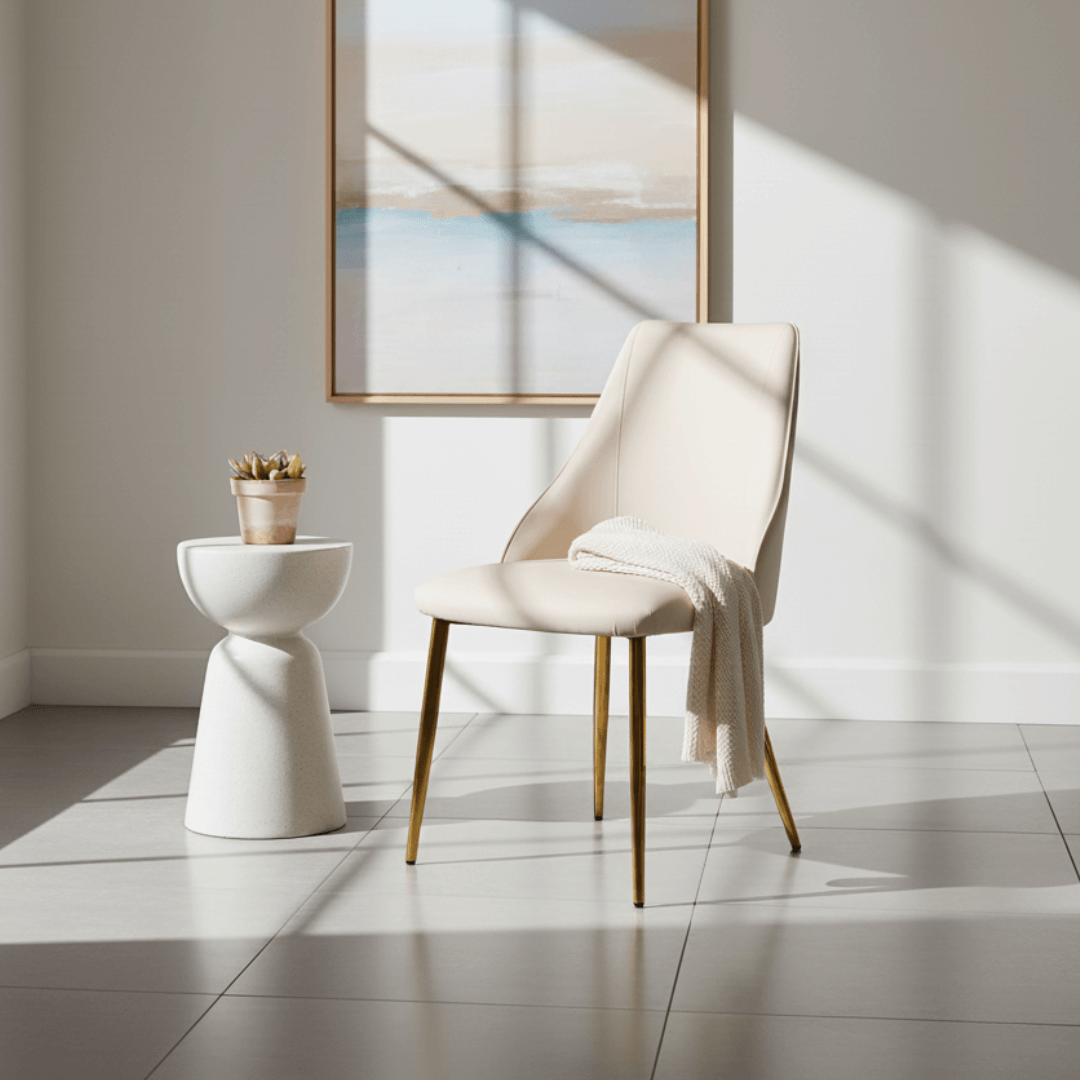 Premium Cream PU Dining Chair with Gold Legs in UAE