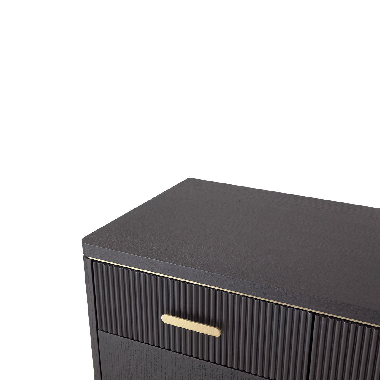 The Elton 4 Drawer 4 Door Sideboard in Espresso features a rich, dark finish with four spacious drawers and four doors, providing ample storage for dining essentials, décor, or household items. Its sleek and modern design makes it a stylish addition to dining rooms, living areas, or hallways, combining functionality with contemporary elegance.