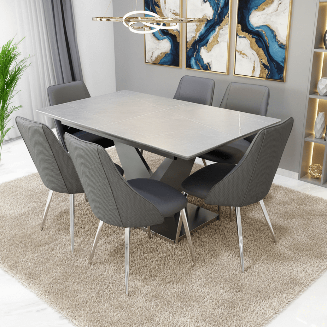 Evora Sintered Stone Extendable Grey Dining Table Set of 6 with Grey Sienna Chairs