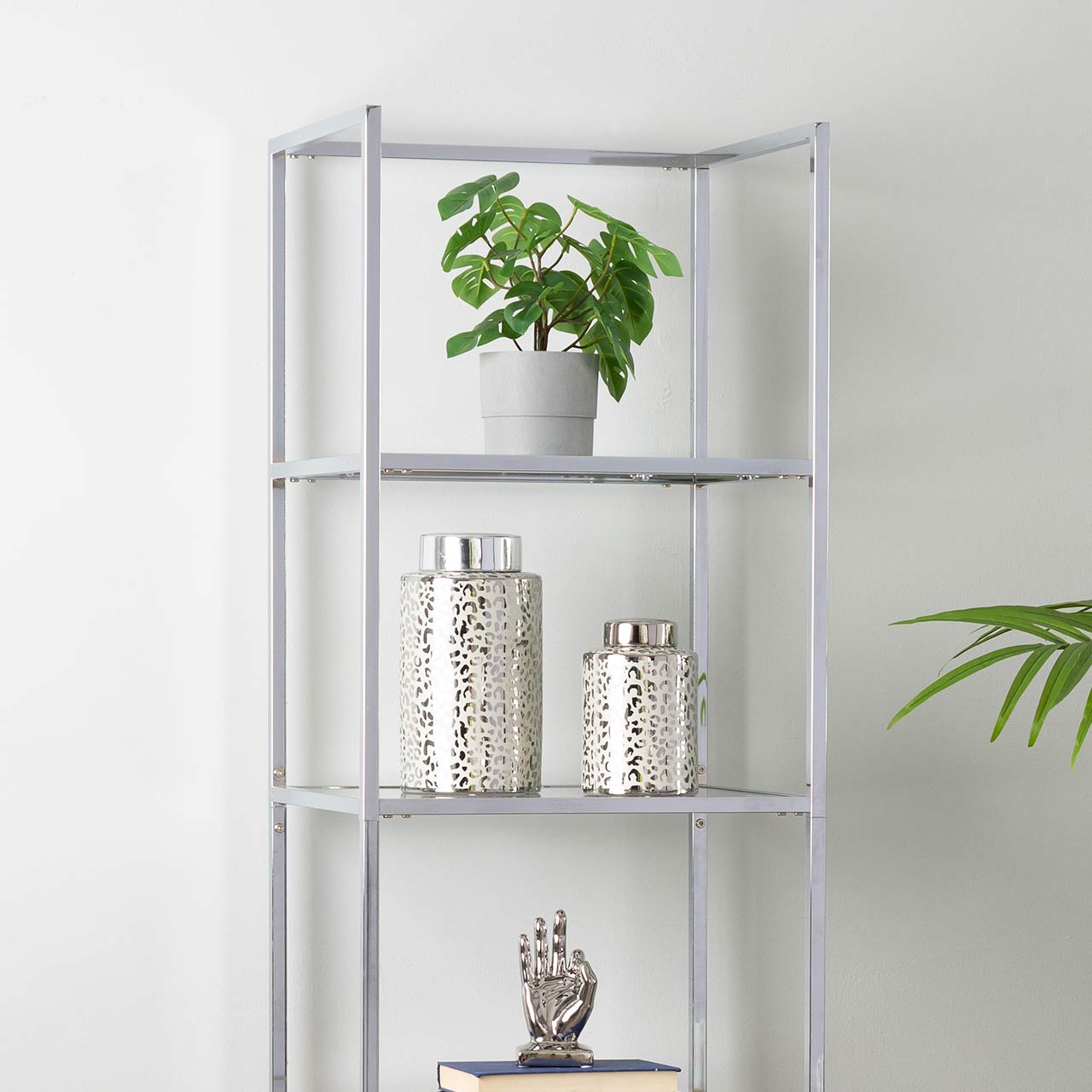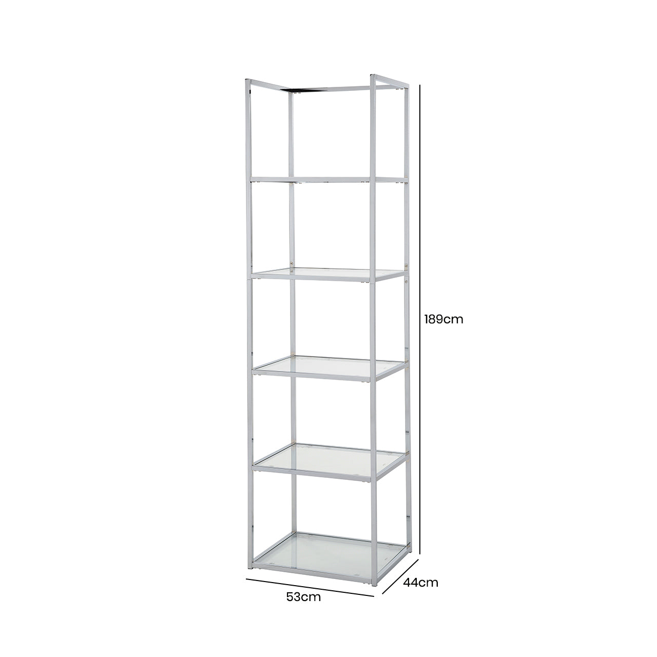 The 5-tiered cube shelf is a stylish and minimalistic display unit that is perfect for showcasing your finest art pieces. The unit is constructed using metal with chrome finish, which gives it a sleek and modern look. The shelves are finished with a tempered glass charm to the overall design and also provide the transparency that allows you to see your displayed items from all angles. The unit is also very sturdy and durable, ensuring that it will last for many years.