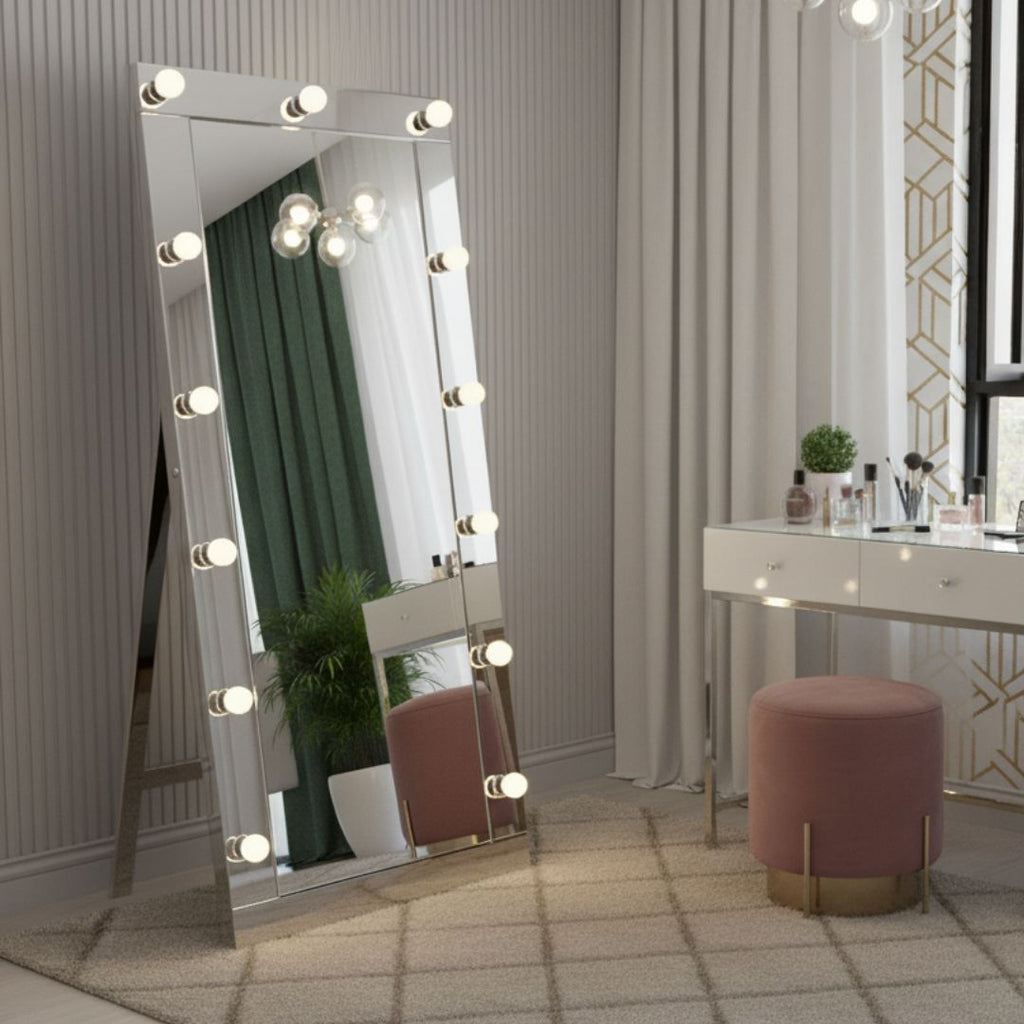 In addition to its 13 bright lights, this full-length mirror also comes with a dimmer switch, allowing you to adjust the brightness to your liking. This feature is perfect for those early mornings or late nights when you need a softer light. The mirror itself is made of high-quality glass, providing you with a clear and distortion-free reflection. The mirror is also mounted on a sturdy frame, ensuring its stability and durability over time. Its sleek and modern design will add a touch of sophistication to your decor while providing you with a functional and practical piece of furniture.