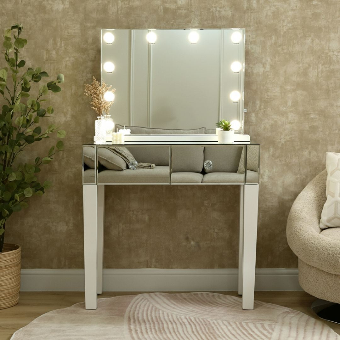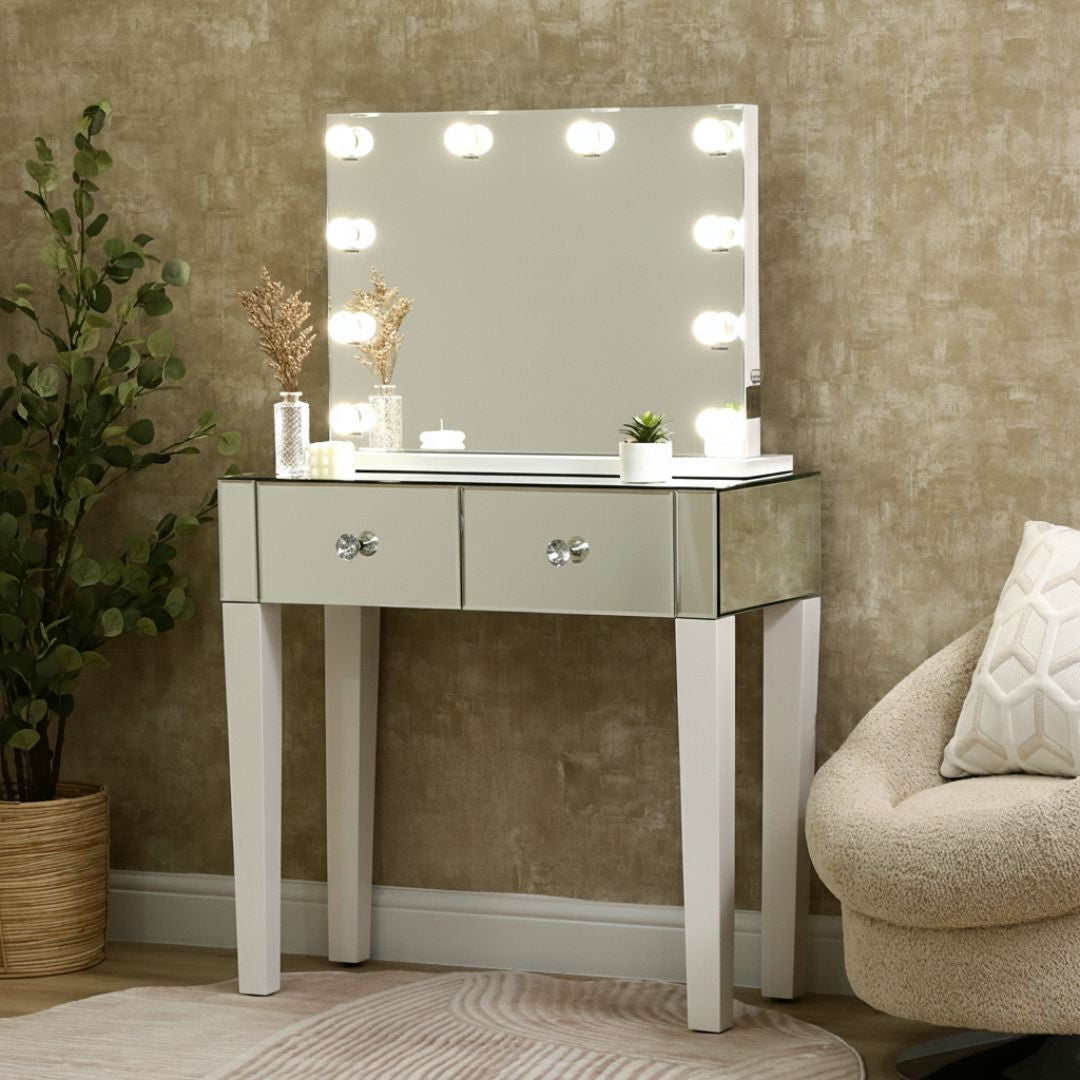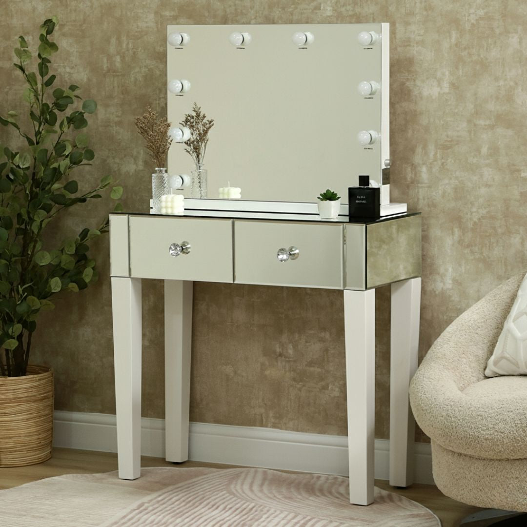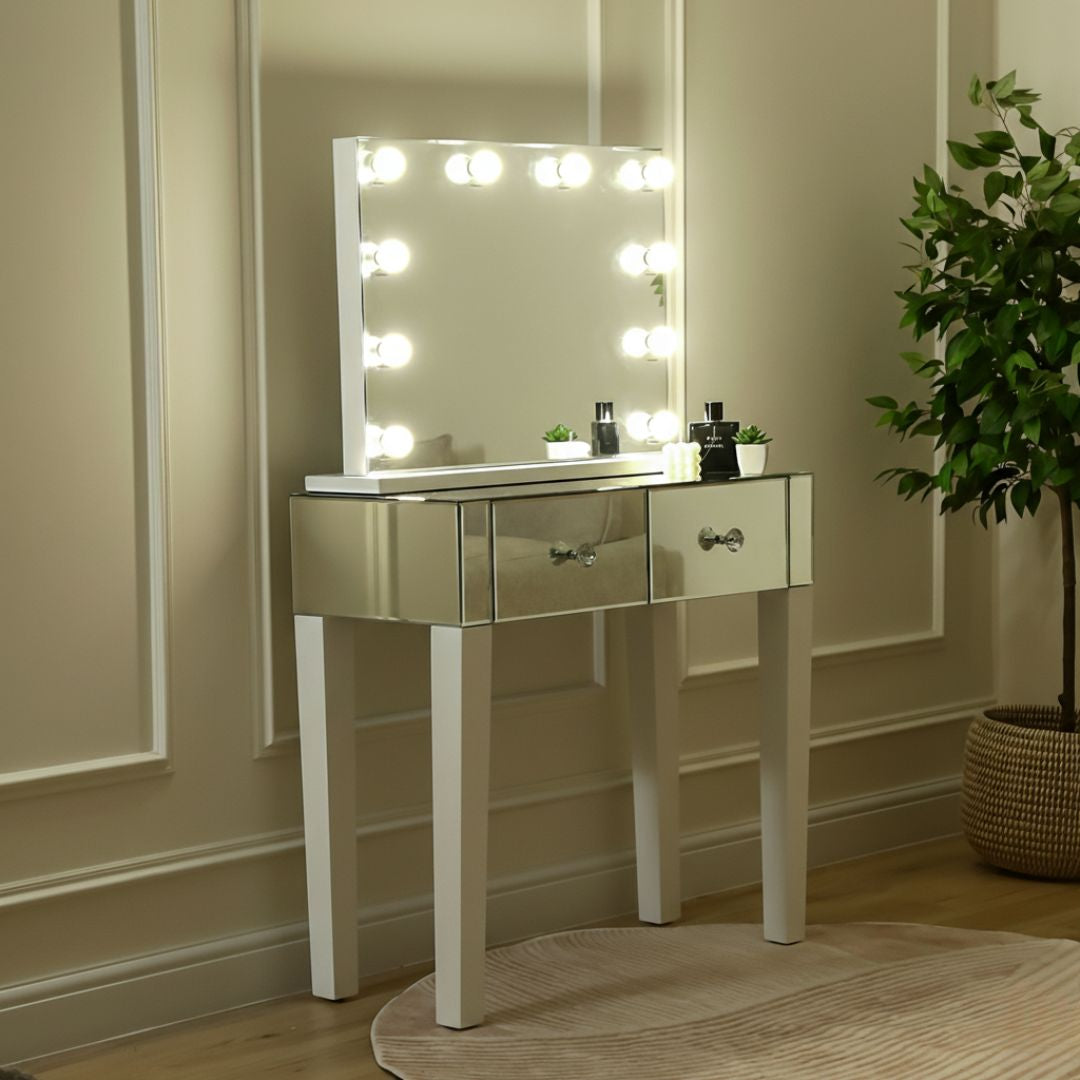 Landscape Vanity Mirror with lights With Two Mirrored Drawers Dressing Table
