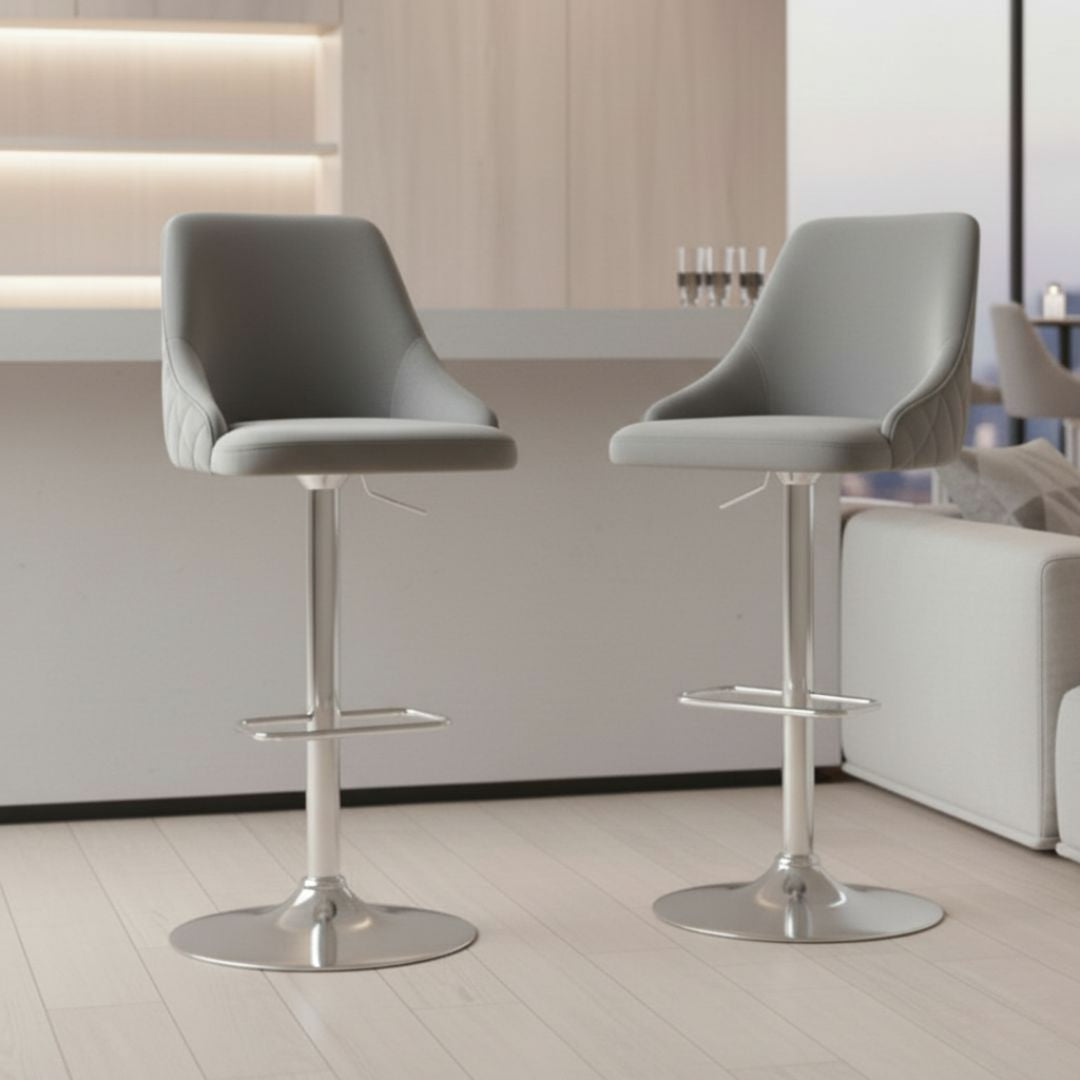 Bought a pair for our kitchen island, and they fit in seamlessly. The grey velvet is sophisticated and pairs well with our decor, while the chrome gives it a modern twist. The adjustable feature is also a great touch, accommodating all family members.