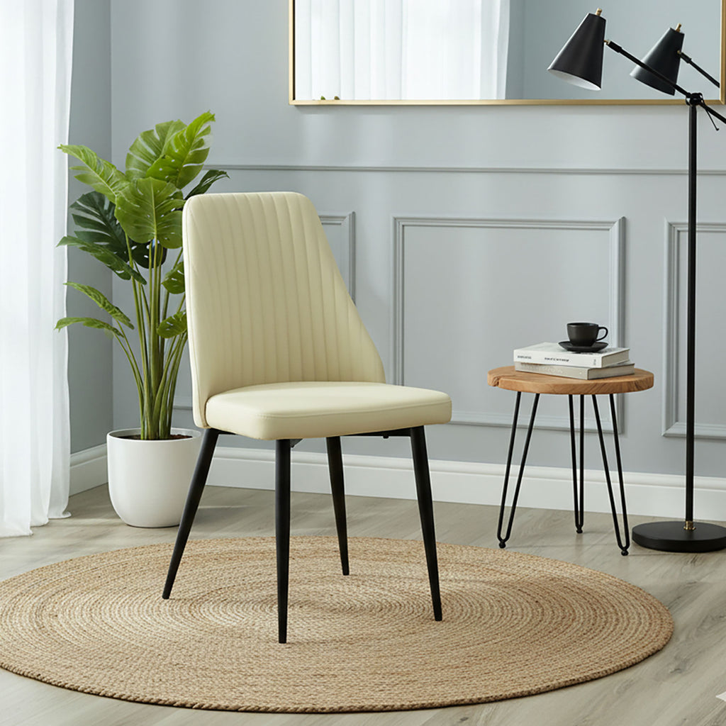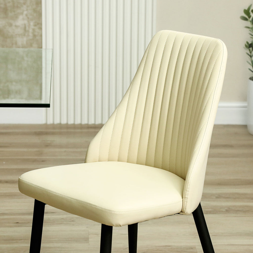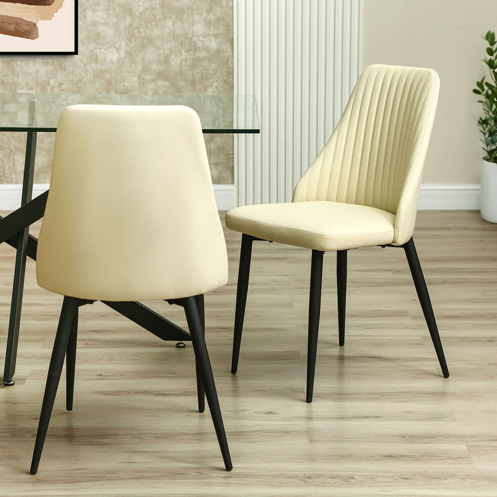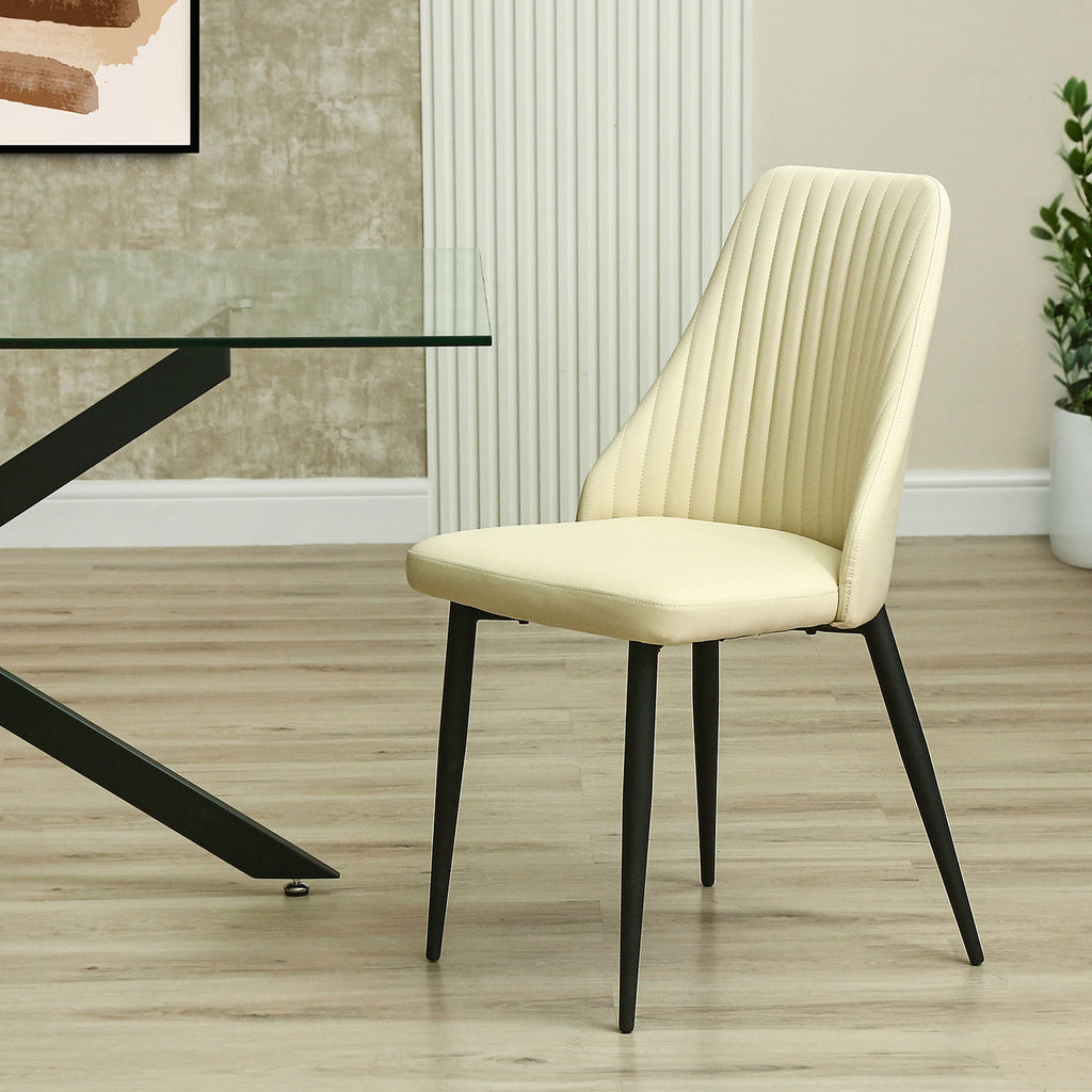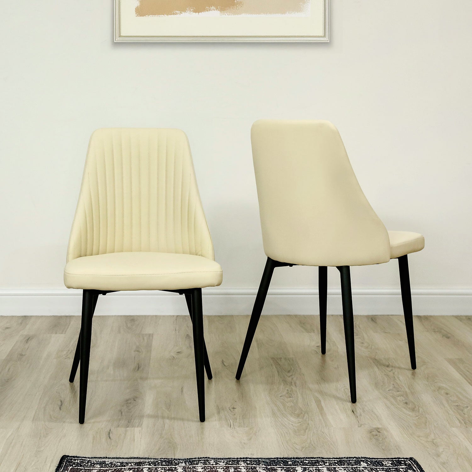 Elevate your dining experience with the Misano Cream PU Dining Chair set of 2, featuring a stunning straight-stitched design and Black Sandy Powder Coating legs. This chair effortlessly combines elegance with functionality, boasting sumptuous Cream PU upholstery that not only exudes luxury but is also easy to maintain. The meticulous stitching on the seat and backrest enhances both style and support, ensuring you and your guests dine in comfort and sophistication. The sturdy legs with their unique sandy powder coating finish not only provide stability but also add a distinctive touch to your dining space. With its timeless design and ergonomic comfort, the Misano Dining Chair is the perfect addition to any modern dining room.