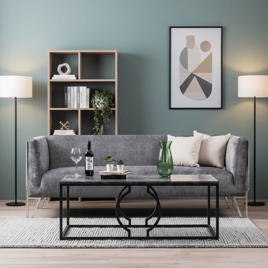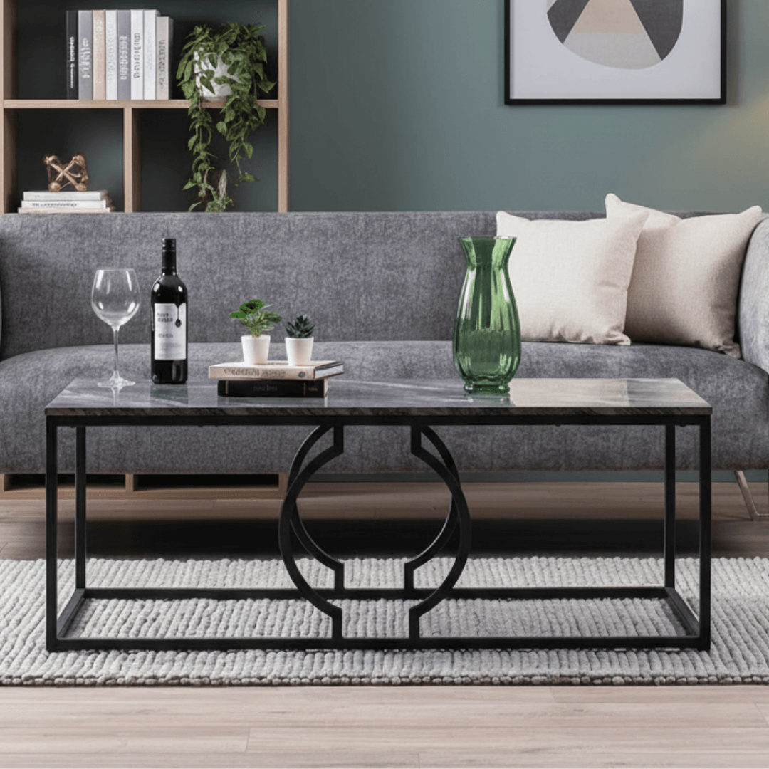 Our elegant Coffee Table features a black and white marble top and a black sanded powder-coated frame. This coffee table is designed to add a touch of sophistication to your living room while offering functionality and storage. The coffee table features a stunning black and white marble top, showcasing the natural beauty and unique veining patterns of the marble.