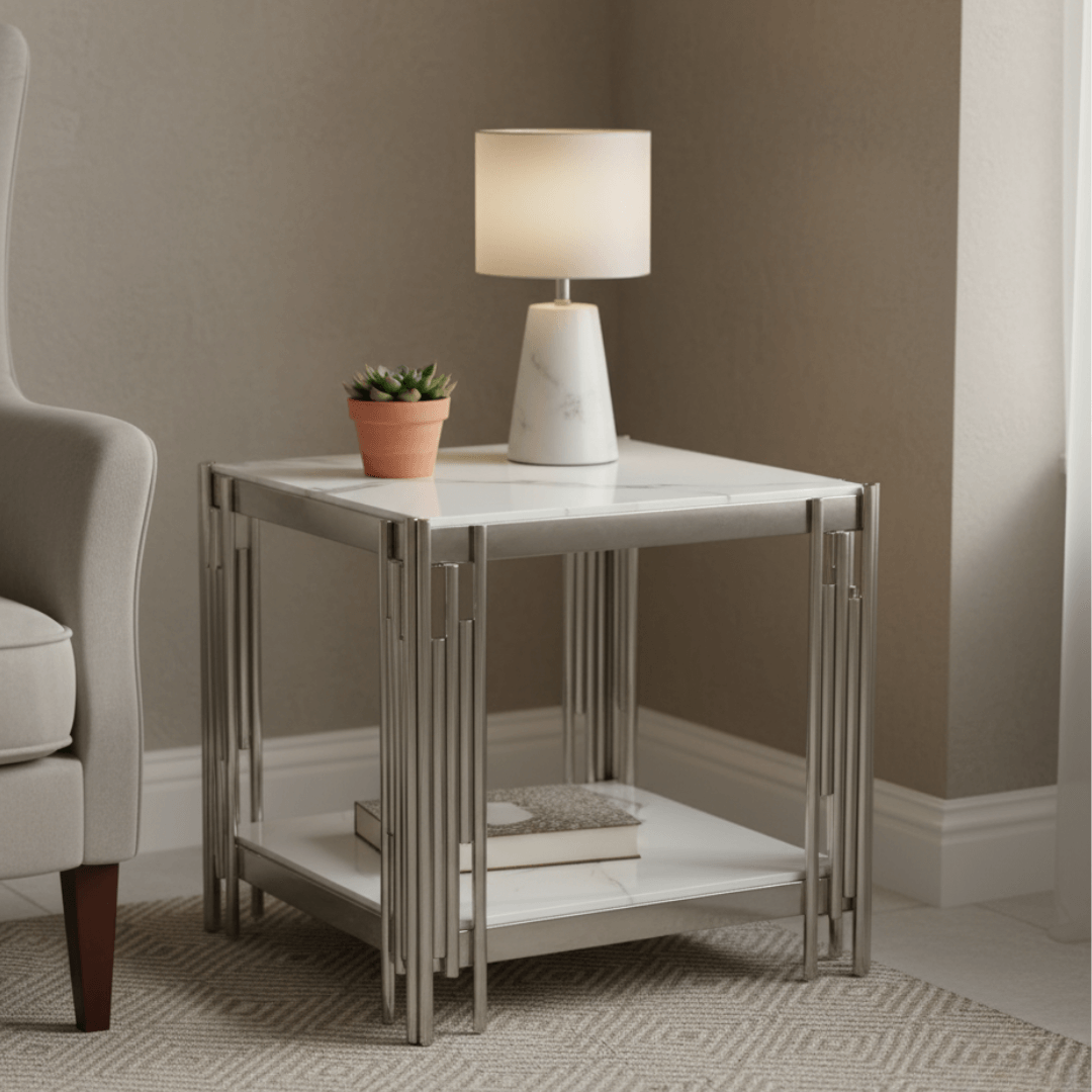 Seppio Chrome Stainless Steel with Marble Craft Top Side Table