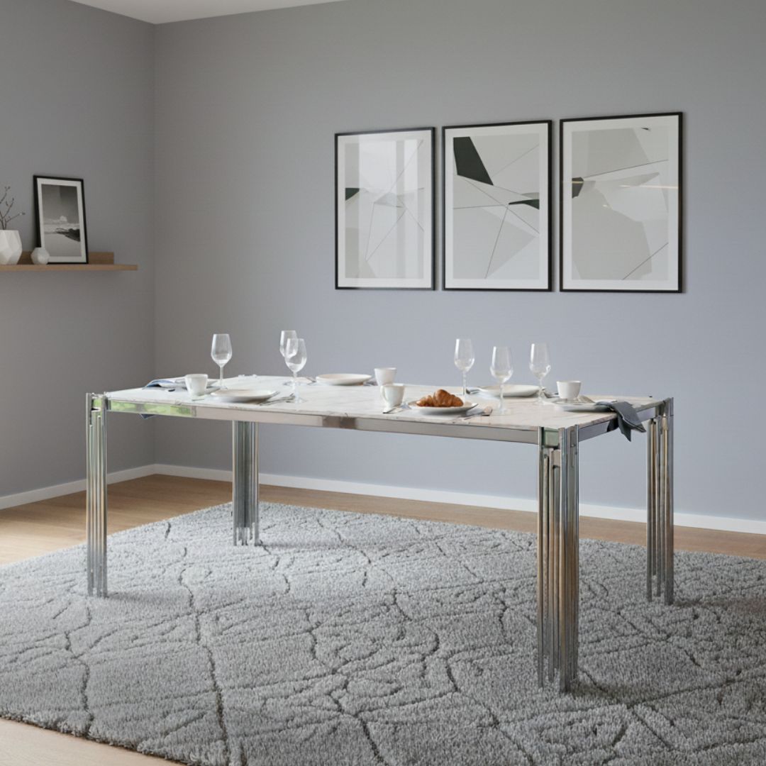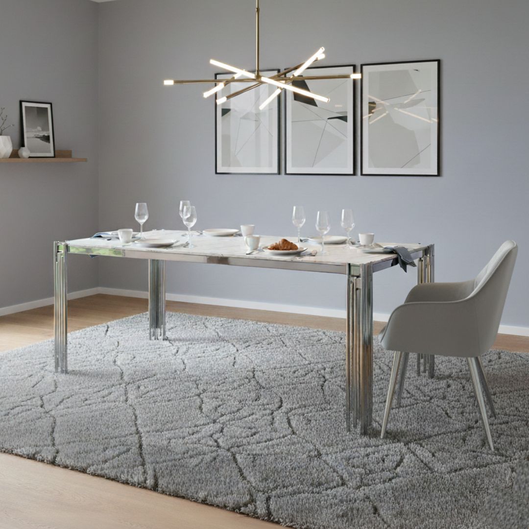 Introducing our exquisite Chrome Stainless Steel Dining Table, featuring a sophisticated Marble Craft Top that effortlessly combines modern aesthetics with timeless elegance. This dining table is a testament to refined craftsmanship, with its sleek and sturdy chrome stainless steel base offering both stability and a touch of contemporary allure. The Marble Craft Top, with its impeccable attention to detail and luxurious finish, showcases a beautiful fusion of natural beauty and artistry. Whether you're gathering for a casual family dinner or hosting a formal event, this table is a statement piece that promises to elevate any dining experience. Enjoy the perfect blend of style and functionality with this exceptional dining table, where every meal becomes an opportunity to savor both culinary delights and exquisite design.