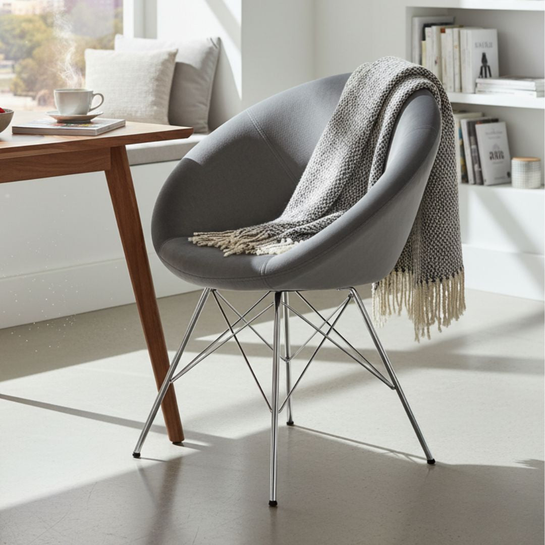 This Seville Grey Orb Dining Chairs Set of 2 is a stunning addition to any dining space—designed to bring both style and comfort to your everyday meals. Each chair features a unique orb-shaped backrest that creates a modern statement, paired with sleek silver metal bar legs for a clean, contemporary finish. Upholstered in soft grey velvet, this set offers plush comfort and supportive seating for long, relaxed dining moments.