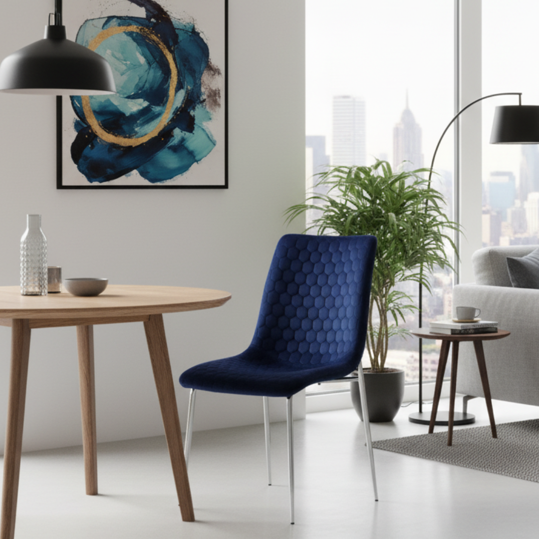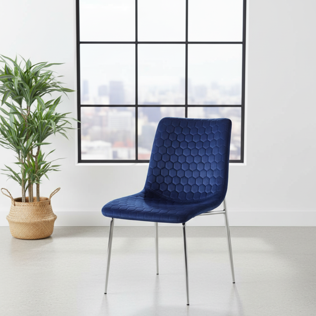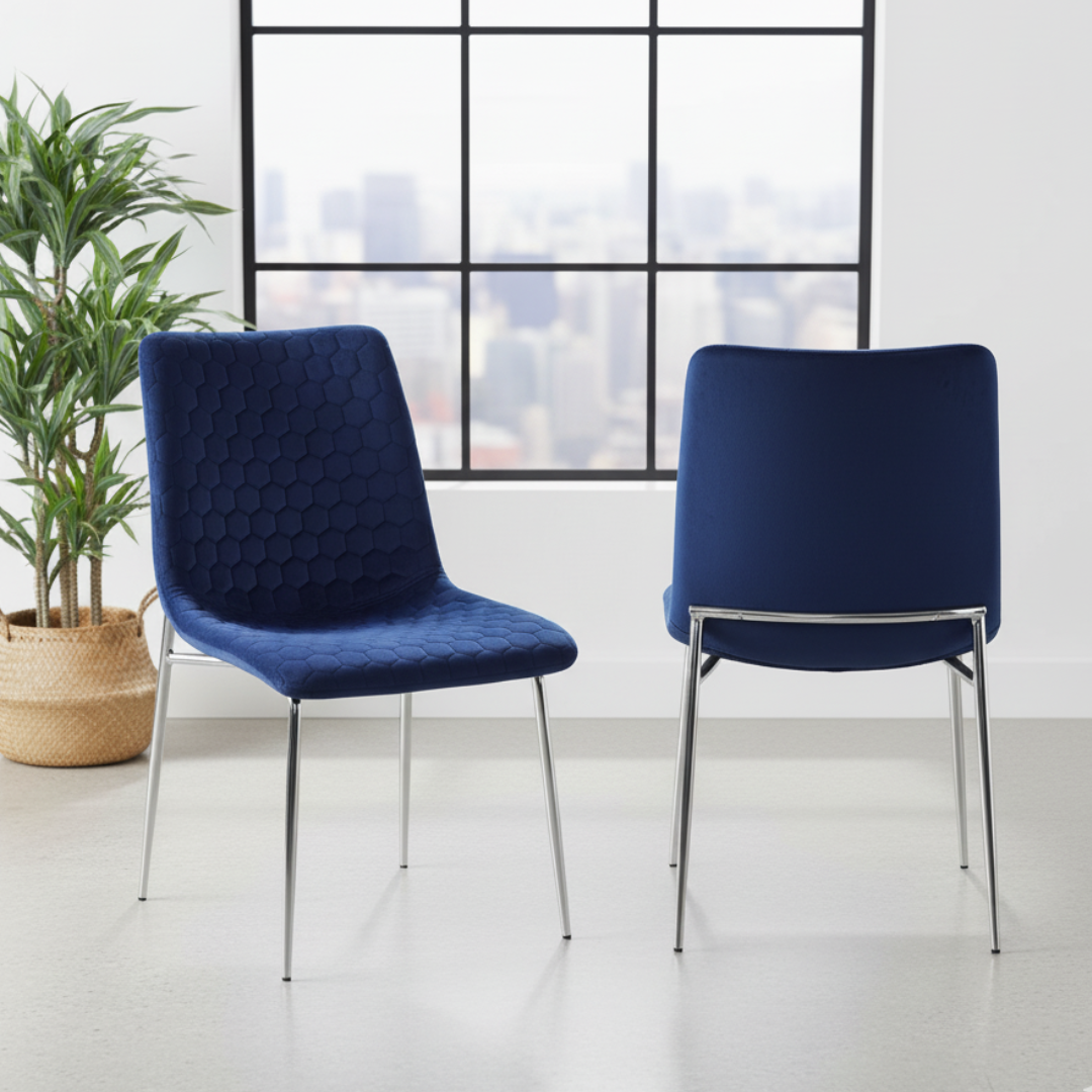 Set Of 2 Zula Blue Dining Chairs With Chrome Legs