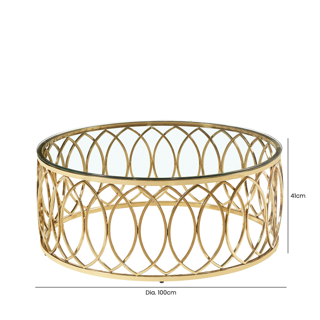 Our stunning coffee table featuring a tabletop with tempered glass and an elegant gold stainless steel frame. Introduce modern elegance into your living or dining space with this 41cm Round Stainless Steel Coffee Table. Crafted to elevate your interior decor, this table serves as a stylish centerpiece, boasting a sleek stainless steel construction and a contemporary design that merges functionality with chic aesthetics.