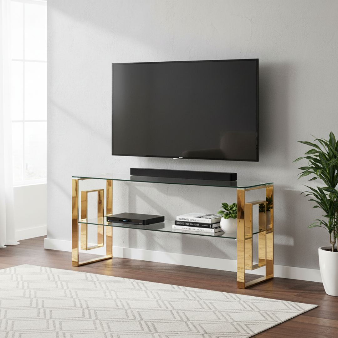 If you are looking for a tv unit, tv table stand, modern tv stand, corner tv stand, glass tv stand, tv stand unit, tv stands, designer tv stand, small tv stand, tv stands for sale, tv stand furniture, tv stand cabinet, living room tv stand, gold tv stand, metal tv stand, TV Unit - Verona Gold is your best choice.